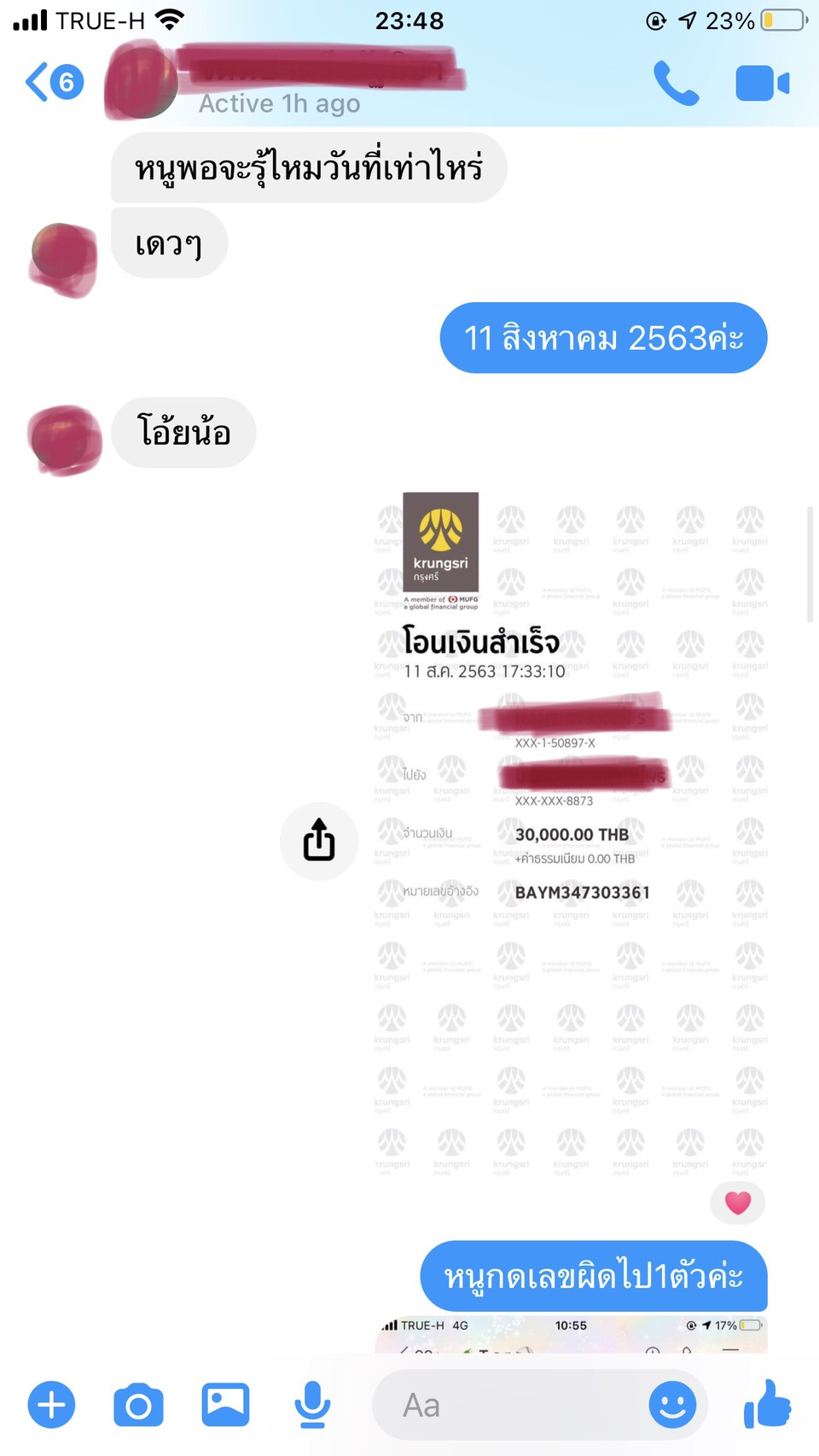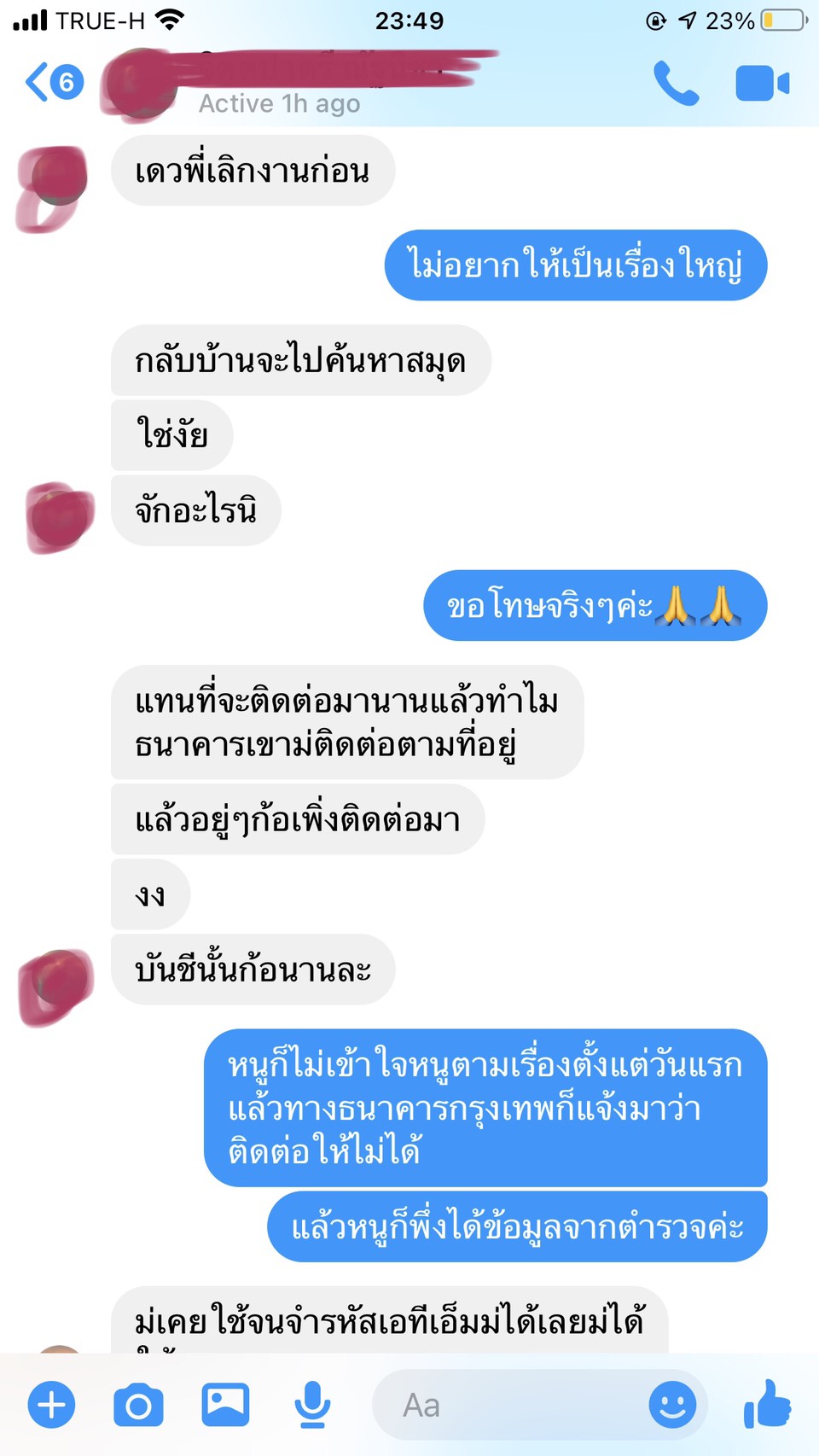 สวัสดีค่ะคือเราโอนเงินผิดพร้อมเพย์จากธนาคารกรุงศรีไปธนาคารกรุงเทพแล้วก็ได้ตามเรื่องกับธนาคารทั้ง2แล้วเค้าติดต่อให้ไม่ได้เลยแจ้งความออกเอกสารตราครุฑเพื่อดูความเคลื่อนไหวและข้อมูลของเจ้าของบัญชีค่ะจึงตามได้แต่เป็นภรรยาของเจ้าของบัญชีค่ะแล้วเราพยายามคุยและเค้าบอกสามีเปิดให้เค้านานแล้วแต่เป็นชื่อสามีและเค้าพยายามบ่ายเบี่ยงมากค่ะทั้งที่เรามีหลักฐานทุกอย่างเค้าบอกเค้าไม่ได้ใช้บัญชีนี้นานแล้วแต่ขัดกับหลักฐานค่ะที่มีความเคลื่อนไหวของบัญชีอยู่ตลอดและวันที่เราโอนผิดไปเค้าก็ได้ทยอยกดเงินเราออกไปคือเราโอนผิดไปวันที่11สิงหาแล้วมียอดถอนเงินออกในวันที่12สิงหา9ครั้งและวันที่13สิงหา20กว่าครั้งตามหลักฐานที่ธนาคารส่งให้ตำรวจเลยค่ะเค้าจึงเถียงไม่ออกแล้วก็บล็อคเราไปรอบนึงค่ะเพื่อนเราทักไปสักพักแล้วเขาจึงปลดบล็อค