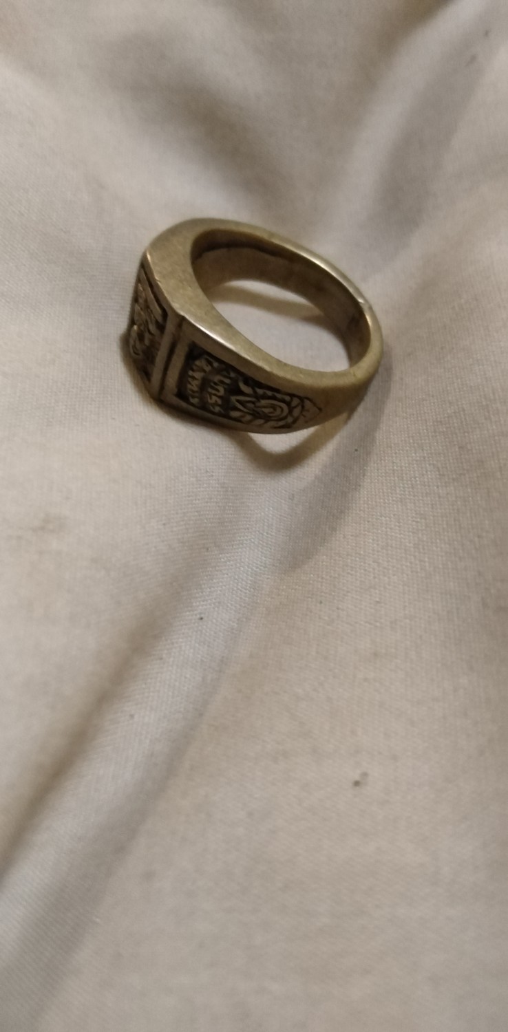 คือมันเป็นแหวนของพ่อของลูกเราที่เสียไปค่ะ เขาให้ไว้ก่อนเกิดอุบัติเหตุทำให้เสียชีวิต เราตั้งใจเก็บไว้ให้ลูก ห้อยไว้กับสร้อยพระลูก แต่เรากลัวว่ามีราคา แล้วคนชอบมาอุ้มามาจับ กลัวมีคนเอาไปเพราะถ้ามีราคา เพราะมันมีค่าทางใจด้วย ที่แขวนคู่พระที่คอ กับแหวะพระของแฟนที่ไม่อยู่แล้ว เราอยากให้ลูกได้อยู่ใกล้กับพ่อเขาเท่าที่ทำได้ แต่ถ้ามีคงต้องถอดเก็บไว้ให้ก่อน แล้วเป็นพระอะไรคะ มองเท่าไหร่ก็มองไม่ออก เพราะพระของแฟน ส่วนใหญ่ได้มาตอนเขาบวช แต่เขาไม่ได้บอกอะไรเราเลย