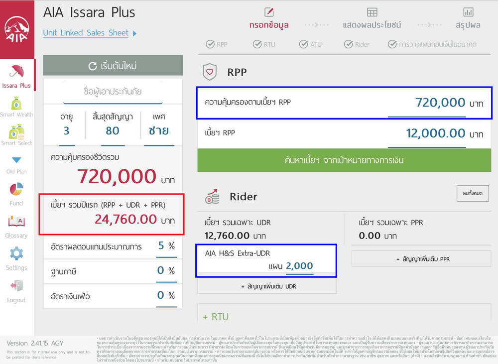 ตัวอย่างแผนประกันสุขภาพ UDR Unit-linked ให้ลูกชายอายุ 3 ขวบ