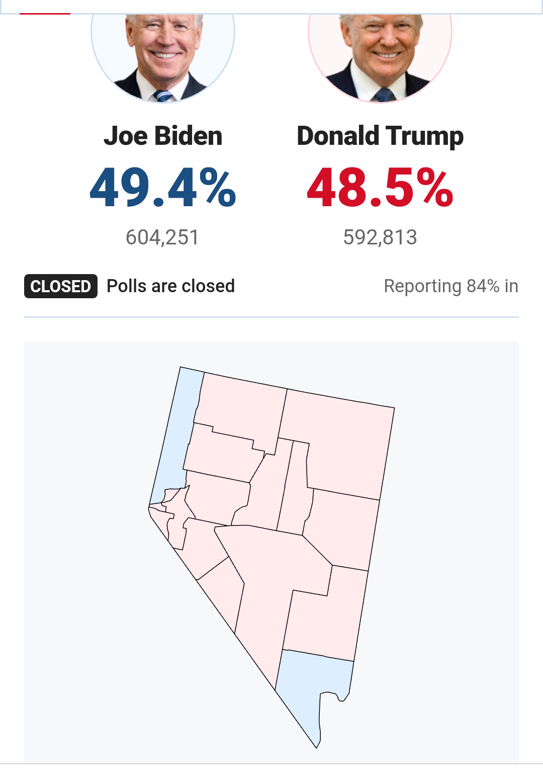 รัฐเนวาด้า ดูตามภาพนี้สีชมพูเยอะกว่า แต่ทำไมไบเดน นำครับ?