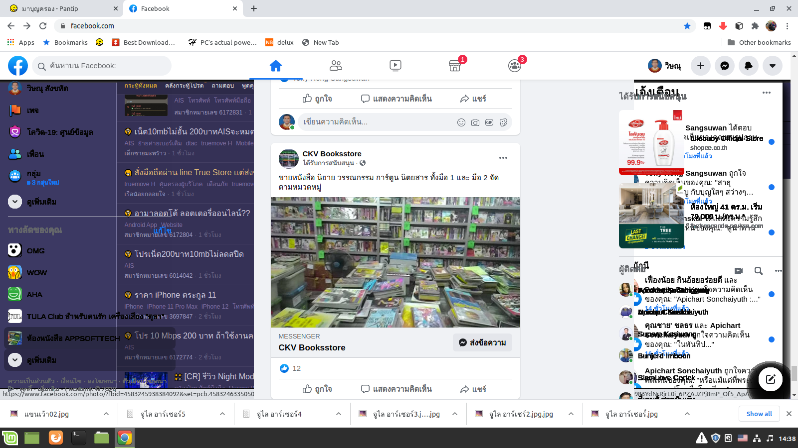 ผมใช้กูเกิลโครมบนลินุกส์ ใช้ไปแล้วไปทานข้าวสักพัก ก็เจอหน้าจอของพันทิปมีบางส่วนซ้อนกันกับของเฟสบุค