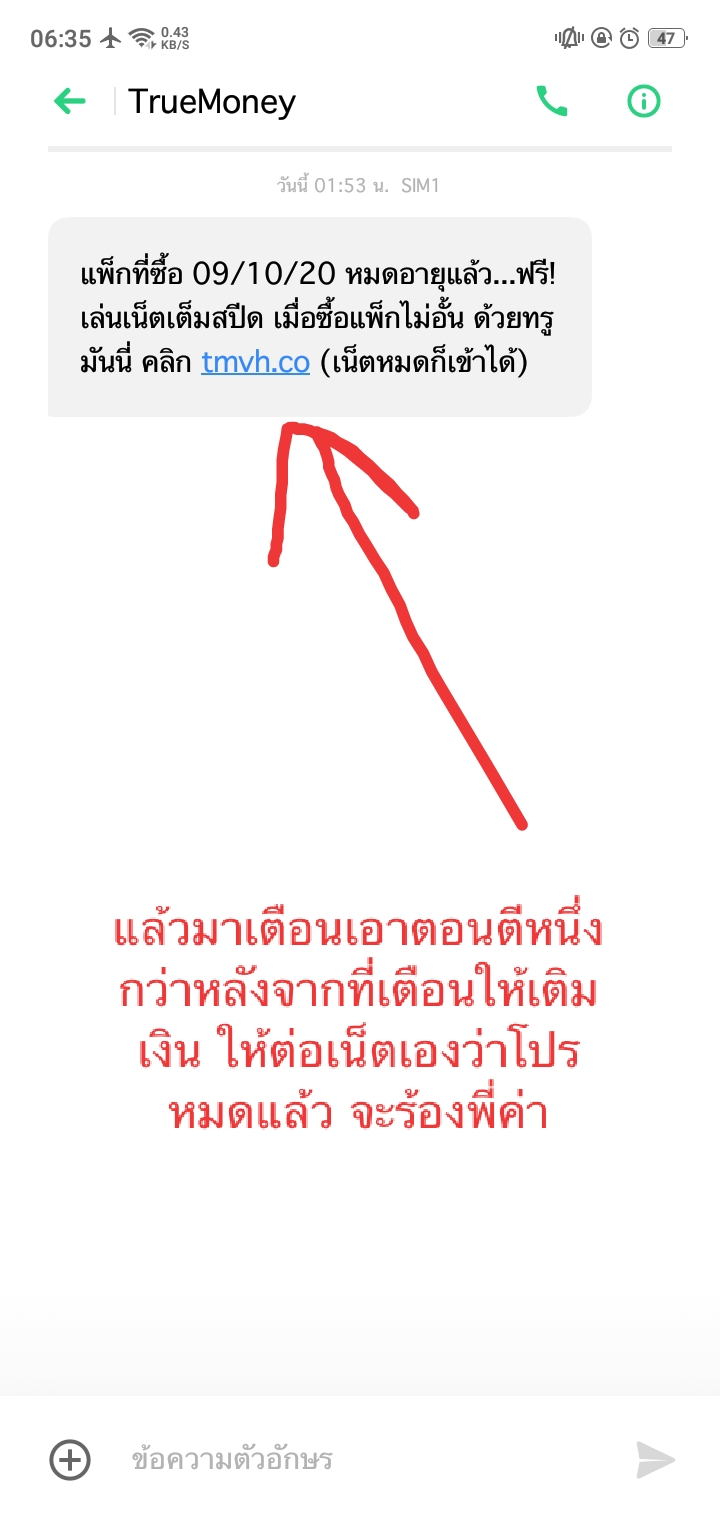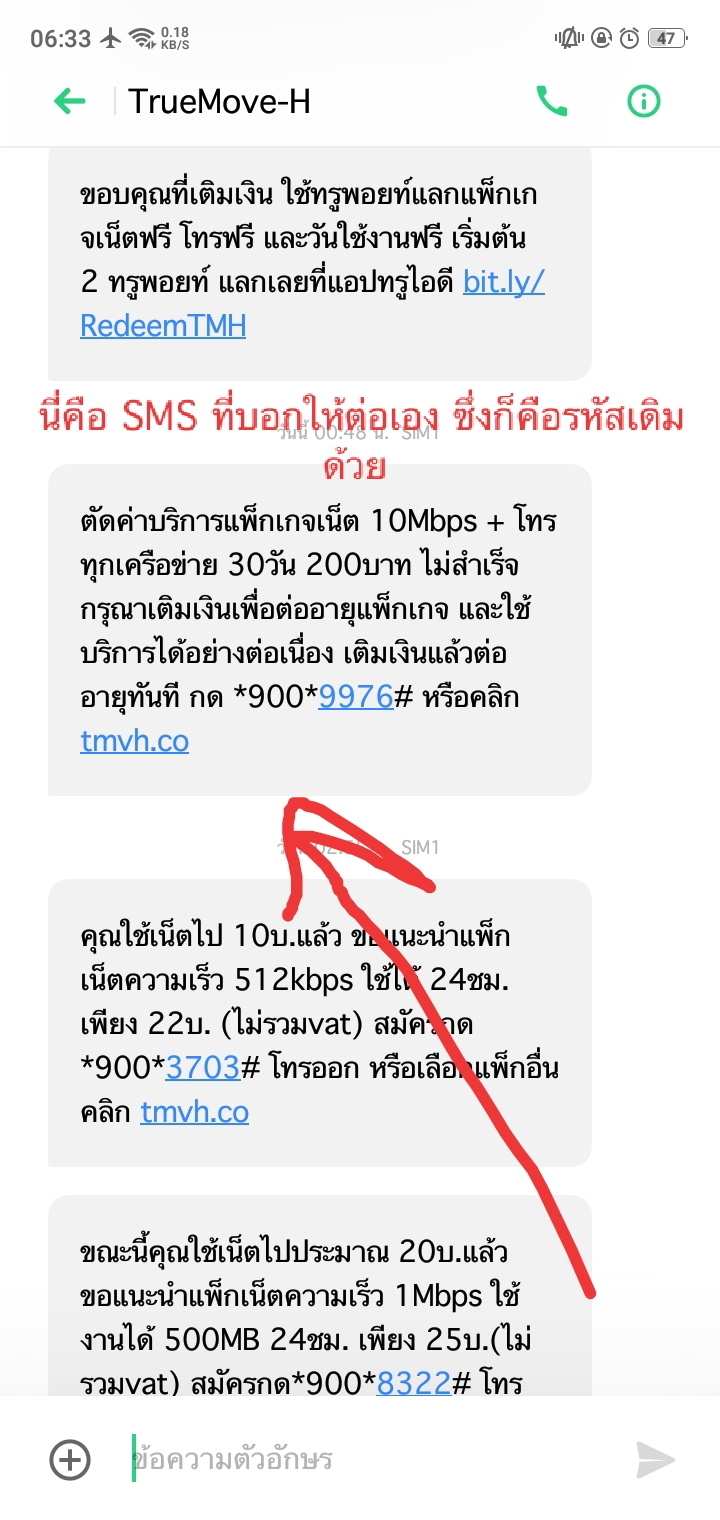 ได้SMS ว่าให้เติมเงินเพื่อต่อเน็ต 10 mbps 200 บาท (เดือนสุดท้าย) แต่พอเติมแล้วบอกต่อเน็ตไม่ได้ ต้องทำยังไง