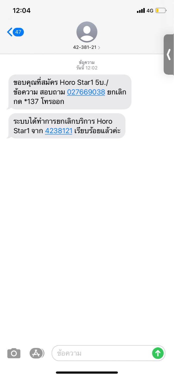 เจอบ่อยมาก กด *137 ยกเลิกไปไม่ต่ำกว่าสิบรอบ ผ่านไปวันเดียวเอาอีกแล้ว ข้อความสมัครมาอีกแล้ว ต้องให้ผมทำยังไงถึงจะไม่มีการสมัครข้อความอัตโนมัติแบบนี้เกิดขึ้นอีก ผ