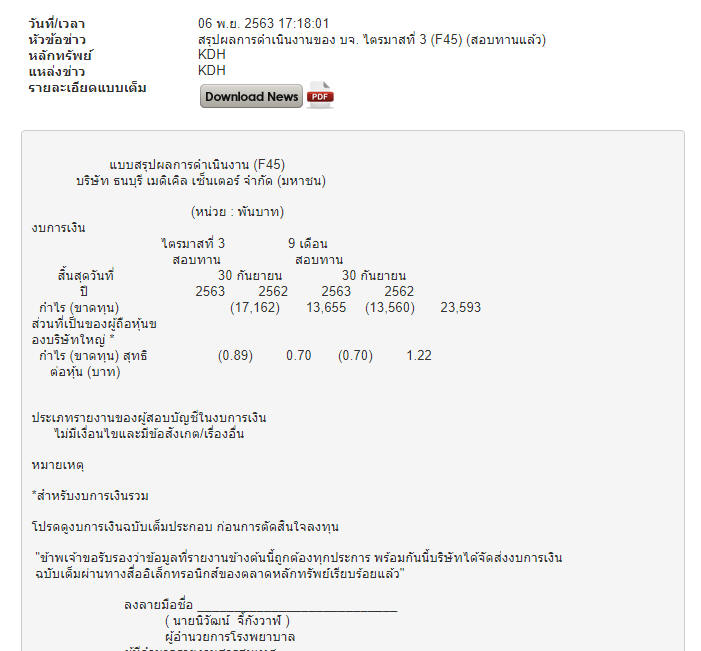 ง บ K D H ธนบุรี เมดิเคิล เซ็นเตอร์