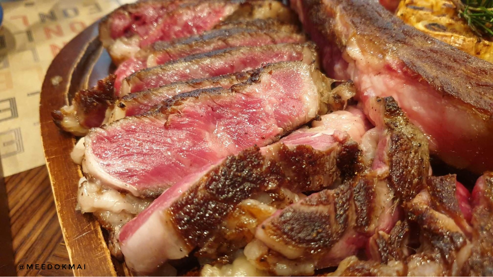 ✅TOMAHAWK หรือเนื้อด้ามขวาน size 1.2 KG ราคา 250/100g. ความสุก Medium rare มันก็จะนุ่มฉ่ำวาวแบบนี้หละคุณ