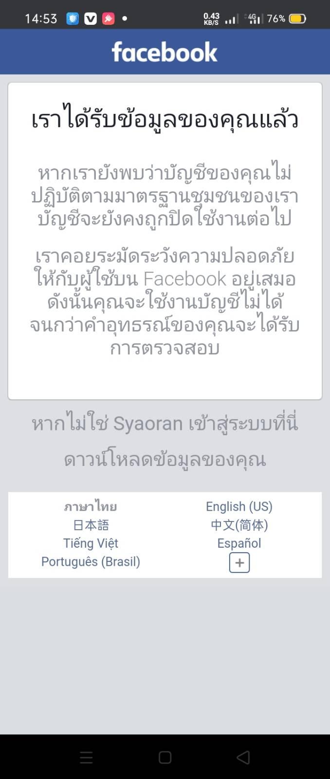 คือที่ผ่านมา 3-4 วันนี้เฟสบุ๊คผมโดนระงับ แล้วมันไม่บอกสาเหตุว่าทำไมโดนระงับ แต่พอผมใช้อีกเฟสนึงส่องดูเฟสที่โดนระงับก็สามารถเข้าดูได้ปกติ ทักแชทได้ แต่ไม่สามารถ log in ได้ แล้วศุนย์ช่วยเหลือผมก็ทำตามที