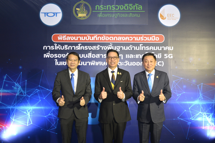 โดยรัฐมนตรีว่าการกระทรวงดิจิทัลเพื่อเศรษฐกิจและสังคม กล่าวว่า บันทึกข้อตกลงความร่วมมือครั้งนี้ ถือเป็นก้าวสำคัญในการพัฒนาการใช้โครงสร้างพื้นฐานระบบโทรคมนาคมและดิจิทัล เพื่อรองรับการสื่อสารข้อมูลความเร็วสูงด้วยเทคโนโลยี 5G ที่จะช่วยกลุ่มอุตสาหกรรมลดต้นทุน เพิ่มประสิทธิภาพการผลิต และเพิ่มขีดความสามารถการแข่งขันของประเทศเพื่อดึงดูดนักลงทุนผู้ประกอบการทั่วโลกให้สนใจเข้าร่วมลงทุนใน EEC โดย สกพอ. ร่วมกับ ทีโอที เตรียมความพร้อมให้บริการระบบ 5G เต็มรูปแบบแก่ภาคอุตสาหกรรมและร่วมกับผู้ประกอบการภาคเอกชนรายอื่นๆ ในลักษณะการใช้งานโครงสร้างพื้นฐานโทรคมนาคมร่วมกัน (Infrastructure Sharing)เพื่อลดการลงทุนซ้ำซ้อนระหว่างภาครัฐกับเอกชนใช้ทรัพย์สินของรัฐให้เกิดประโยชน์สูงสุด และไม่เป็นการผูกขาดทางธุรกิจ
