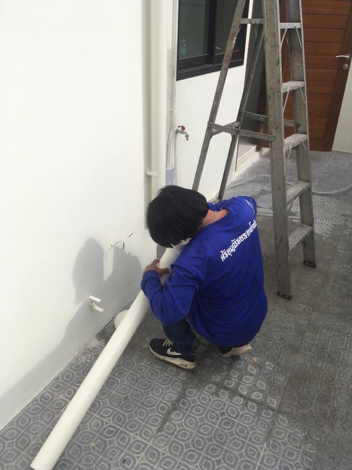 ช่างคนนี้ชื่อ ช่างเขียน ครับ เผอิญผมไปหาข้อมูลใน Pantip เจอเพื่อนสมาชิกท่านนึงเคยใช้บริการแก ผมเลยลองโทรไปคุย แกเป็นคนบ้านๆ คุยง่ายมากกกกก รับงานกับลูกชาย 2 คน อยู่แถวลำลูกกา ปทุมฯ ผมนัดแกให้มาที่หน้างาน แกมาถึง แกแนะนำดีมาก ใช้รางขนาดเท่าไหร่ ตำแหน่งน้ำลงควรมีกี่จุด ใช้ท่อนำน้ำลงกี่นิ้ว อันนี้ใหญ่เกินไปเปลืองตังค์ อันนี้เล็กไปน้ำลงไม่ทัน แกแนะนำหมด