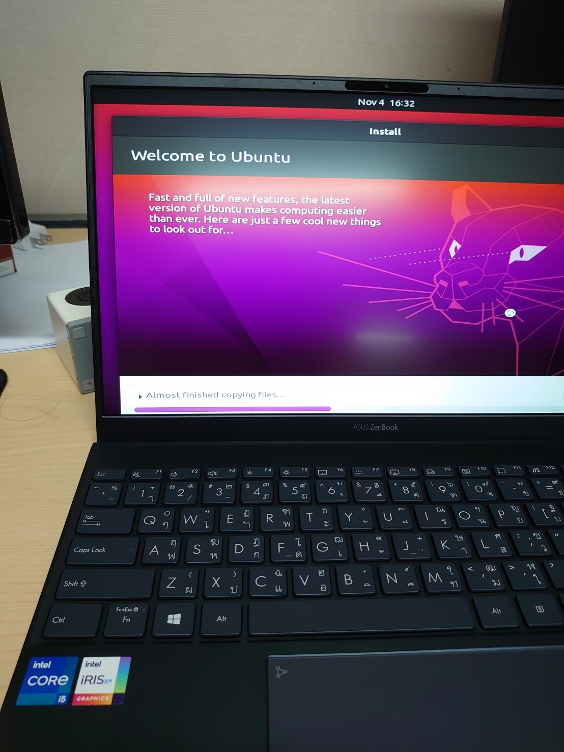 คาดว่าจะเกิดการไม่มีไดร์เวอร์ ก็เลย ถอด ss evo+ ไปใส่ของเดิมแทน พอจะลง win10 ก็อาการเดียวกัน ผมบอกไว้เลยนะว่า win10 โหลดจาก Microsoft โดยตรง ผมเลยทำการทดลองลง Ubuntu แทน ใช่ครับมันลงได้ สามารถ Format แบ่ง partition ได้ตามปกติเลย เอาวะใช้ Ubuntu แทนก็ได้