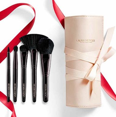 เซตแปรงสุดหรูหรานี้ประกอบด้วยแปรงห้าด้ามที่มาในไซส์ที่พกพาง่ายเพื่อให้คุณได้สร้างสรรค์ลุคงดงามหลากหลายได้ทุกที่ทุกเวลา ในเซ็ทประกอบด้วย (จากซ้ายไปขวา) Laura Mercier Smoke Eye Liner Brush (สำหรับวาดอายไลเนอร์) Eye Crease Brush (สำหรับแต่งตา) All Over Eye Brush (สำหรับปัดทั่วเปลือกตา) Fan Powder Brush (สำหรับปัดแป้ง) Cheek Color Brush (สำหรับปัดแก้ม) และ ทั้งหมดมาในม้วนเก็บแปรงที่ทำจากหนังสีชมพูราวกับกระเป๋าคลัทช์ ที่มัดให้แน่นกระชับด้วยริบบิ้นอย่างสวยงาม