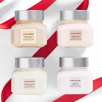 สำหรับผิวที่สมควรได้รับความหรูหราอันหลากหลาย ปรนนิบัติผิวด้วยความหอมชุ่มฉ่ำของการรวมตัวกันของสี่ชิ้นนี้ Laura Mercier’s Soufflé Body Crème ได้แก่กลิ่น Ambre Vanillé, Almond Coconut Milk, Fresh Fig และ Crème Brûlée