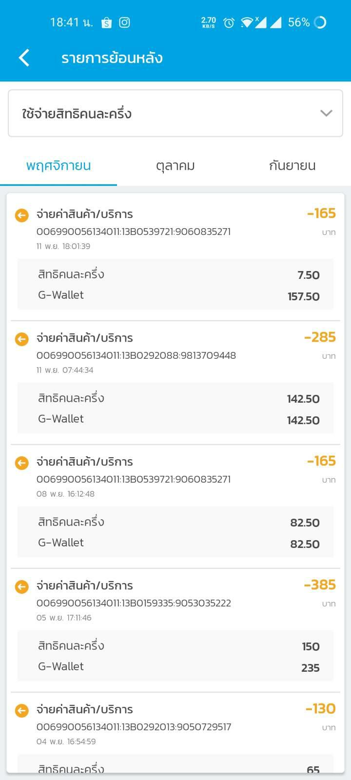 ตามรูปที่มีปัญหาคือยอดบนสุดนะคะ คือปกติใช้สิทธิไม่มีปัญหาอะไร แต่วันนี้ใช้สิทธิแล้วงงที่ว่า ยอด 165 บาท แต่ทำไมหักจากโครงการแค่ 7.50 บาท ที่เหลือหักจาก G wallet หมดเลย สิทธิคงเหลือก็ยังไม่หมดนะคะเหลืออีก 1, 800 บาท เกิดจากอะไรคะ