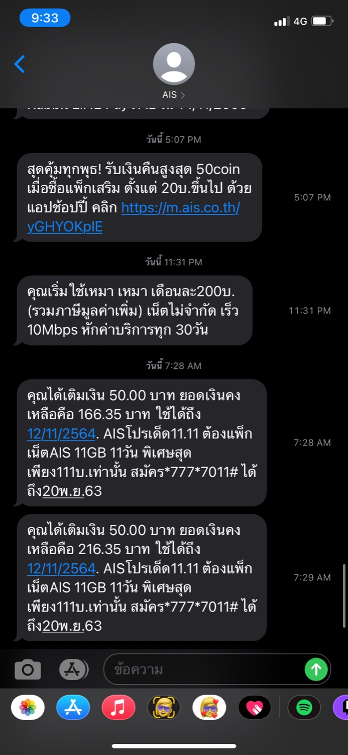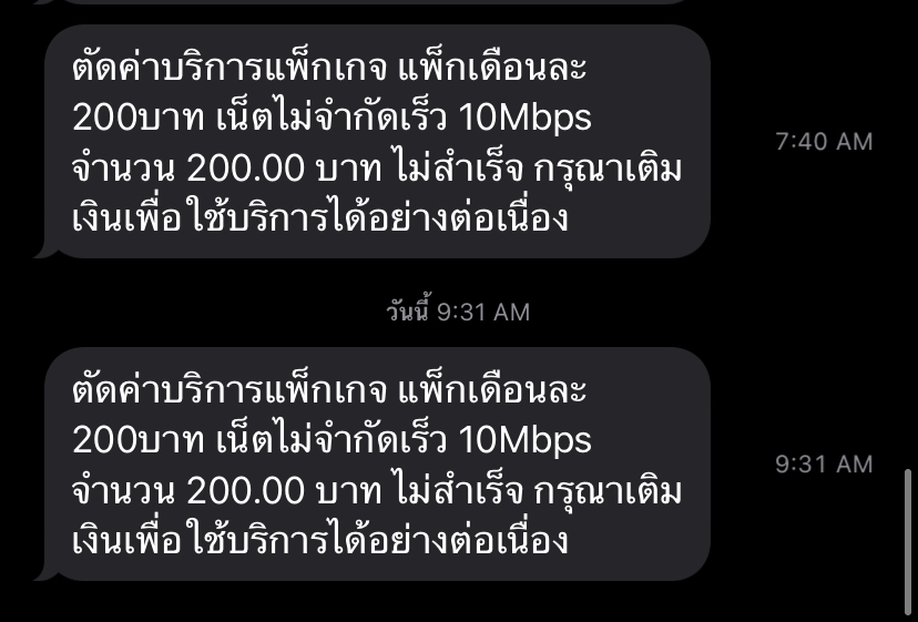 เวลาต่อมาส่งข้อความมาว่าตัดเงินไม่ได้เพราะไม่มีเงินที่เบอร์