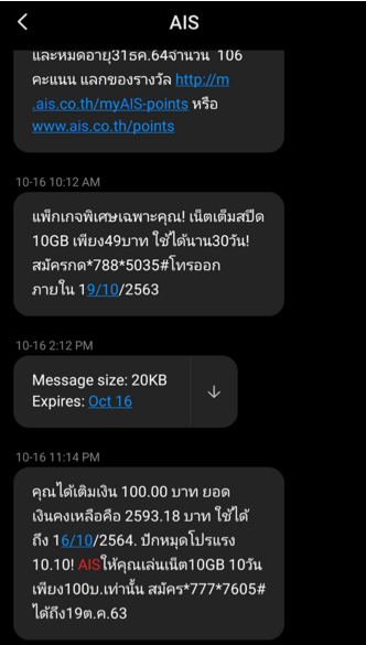 เหตการณ์คือวันที่ 23/10/2020 ผมไปแลกของในระบบ AIS และระบบมีการตัดเงินสำหรับค่าจัดส่ง ซึ่งค่าจัดส่งนั้นมีมูลค่า 50 บาท ผมเลยเลือกหักผ่านเบอร์ไป ซึ่งทาง AIS ก็หักจากยอด 2,593.18 -> ติดลบ -14.28 ผมก็รีบโทรไปแจ้งทันที ซึ่งทาง Call Center ก็บอกว่าไม่เกิน 1 อาทิตย์จะได้เงินคืน