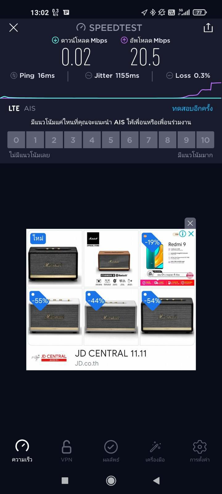 ผมลงทุนซื้อแพ็กเกจ 5G ของเอไอเอส มาลองใช้ปรากฏว่าความเร็วที่ได้ไม่ถึงเมก แถมเน็ตหลุดบ่อยมาก ใช้กับเครื่อง Xiaomi Mi 10T pro อยากได้เงินค่าแพ็คเกจคืนมาก แถมให้ส่งเรื่องตรวจสอบใช้เวลาตรวจสอบนานมาก ส่งไปเมื่อวันที่12 จะทราบผล 25 พ.ย. ตอนสมัครก็มีปัญญาใช้เวลาแก้ปัญหาตั้งสามวัน แถมแก้เสร็จไม่บอกอะไรสักอย่าง ไม่ชี้แจงเหตุผลอะไรกลับมาเลย