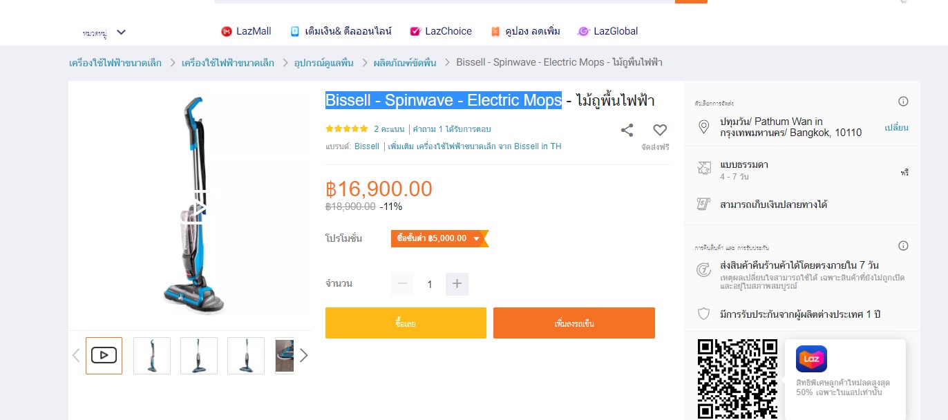 เป็นเครื่องถูพื้นยี่ห้อ Bissell รุ่น Spinwave - Electric Mops น่ะค่ะ ซึ่งเครื่องนี้ปกติขายกันอยู่ที่ราคา 15,000-16,000 แต่เรามาเจอร้านนึงในเว็บ shopee ร้านนี้เป็นลักษณะพรีออเดอร์ 12 วันน่ะค่ะ เขาตั้งราคาขายแค่ 3,090 บาทเองค่ะ คือถือเป็นราคาลดที่แทบจะ 80% เลย ยอมรับว่าดึงดูดใจมาก แต่ไม่กล้าสั่งซื้อค่ะ เราสอบถามทางร้าน เขาบอกว่าได้ทั้งตัวเครื่องเลย แต่ต้องรอสินค้า 12 วัน เราเลยสงสัยว่าแบบนี้คือของก๊อบชัวร์ๆ หรือเปล่าคะ เราลองไปดูรีวิวสินค้าตัวอื่นๆ ที่ลูกค้าซื้อจากร้านนี้ (พอดีสินค้าที่เราอยากได้ ไม่มีรีวิวลูกค้าน่ะค่ะ ยังไม่มีใครสั่งซื้อ) ก็พบว่าลูกค้าเหล่านั้นได้ของกันจริงๆ มีไม่ตรงปกบ้างแต่เป็นส่วนน้อย ส่วนใหญ่จะพอใจกับสินค้าที่ได้รับค่ะ และรูปที่ลูกค้าลงในรีวิวในร้าน ก็เป็นสินค้าที่ยี่ห้อตรงกับที่ลงขายจริง แต่เราก็ยังอดแปลกใจไม่ได้อยู่ดีว่าทำไมถึงร้านนี้ถึงได้ขายถูกมากๆ ขนาดนี้ ใจหนึ่งก็อยากลองสั่งดูนะคะ ว่าจะได้สินค้าจริงตามที่ลงขายหรือเปล่า แต่อีกใจหนึ่งก็ไม่กล้า (สามพันบาท ถ้าถือว่าเอาไปจ่ายเพื่อซื้อความอยากรู้อยากเห็น เราก็ว่าแพงอยู่น่ะค่ะ แหะๆ) เพื่อนๆ คนไหนเคยมีประสบการณ์สั่งสินค้าพรีออเดอร์ที่ราคาจริงหลักหมื่น แต่ร้านพรีขายแค่หลักพันไหมคะ เชื่อถือได้ไหม ได้ของจริงๆ หรือเปล่า ขอบคุณค่ะ