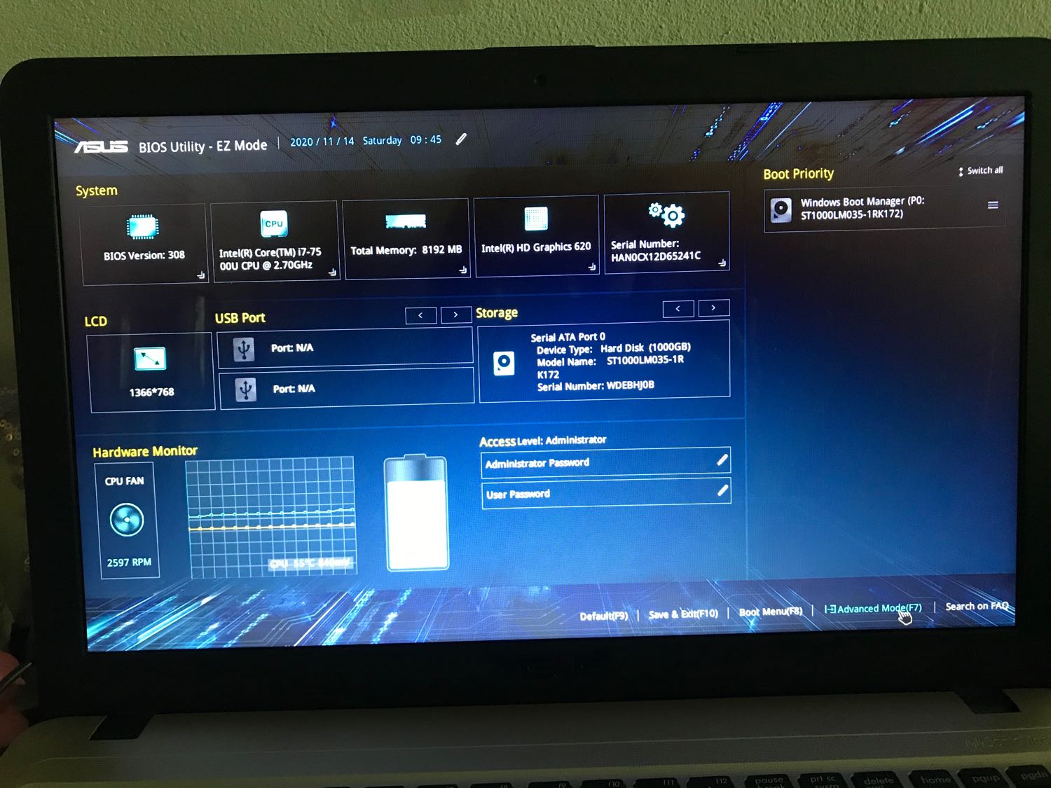เปิดคอมขึ้นมาแล้วขึ้นหน้าจอฟ้าแบบนี้จะแก้ไขได้ยังไงครับ (Asus AiO V241E) รบกวนแนะนำด้วยครับ