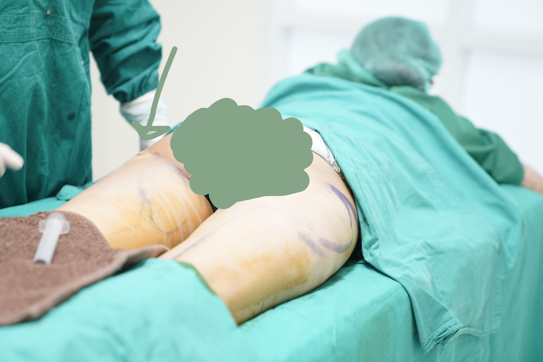 เคสเราคุณหมอดูดไขมันต้นขาหลัง แบบ manual นะคะ ไม่ได้ใช้เครื่อง แล้วเอาไขมันไปปั่น ก่อนเอามาเติมหน้า