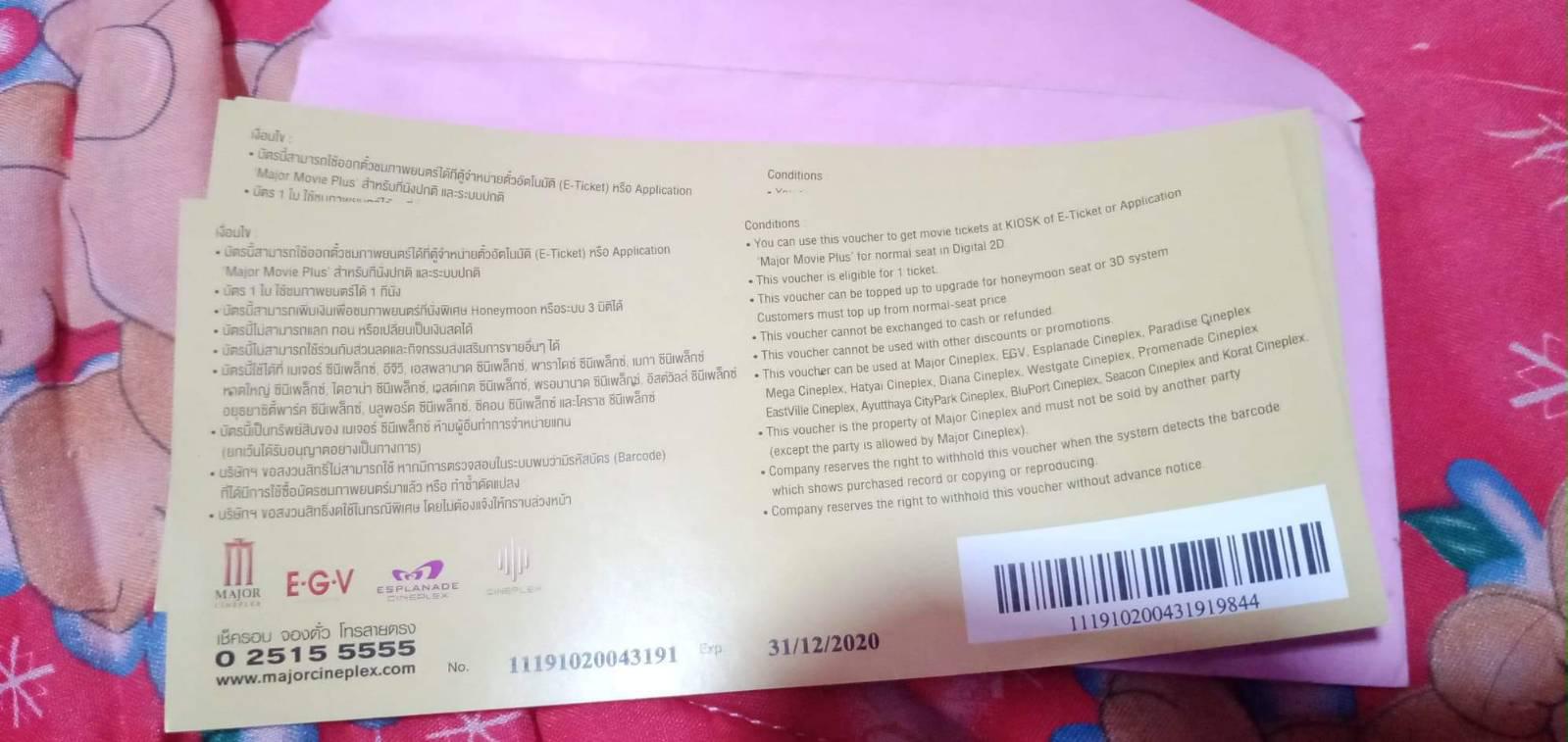 สอบถามเรื่องการใช้บัตร Major Movie Gift Voucher
