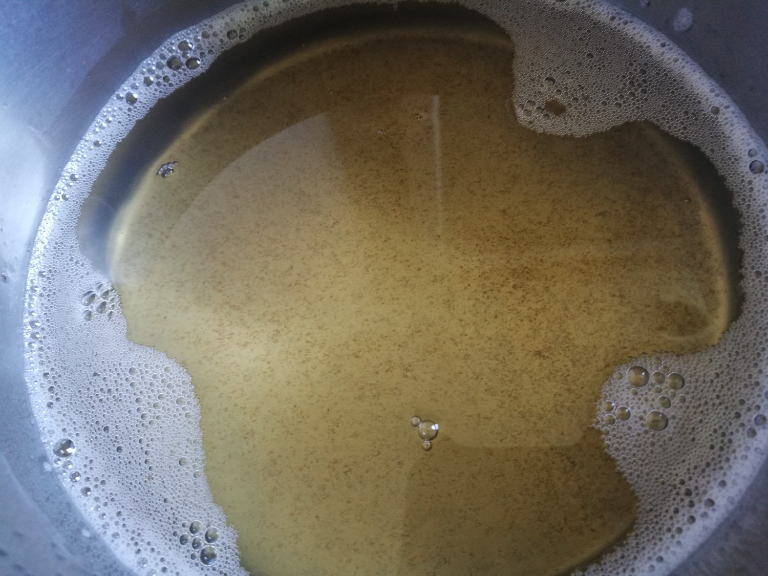 ไม่นานน้ำก็จะเปลี่ยนเป็นน้ำมันตามรูปภาพค่ะ เจียวต่อจนกากหมูเหลือสวยเลยนะค่ะ
