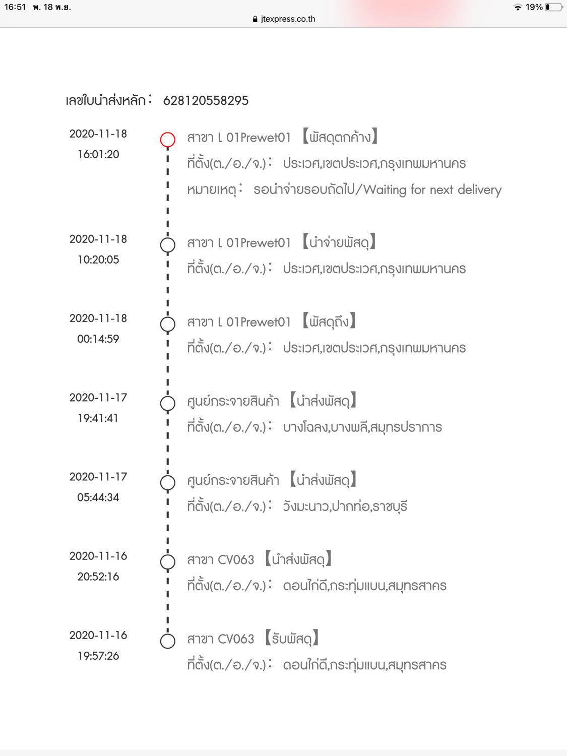 พัสดุตกค้างมา ของ j&t express