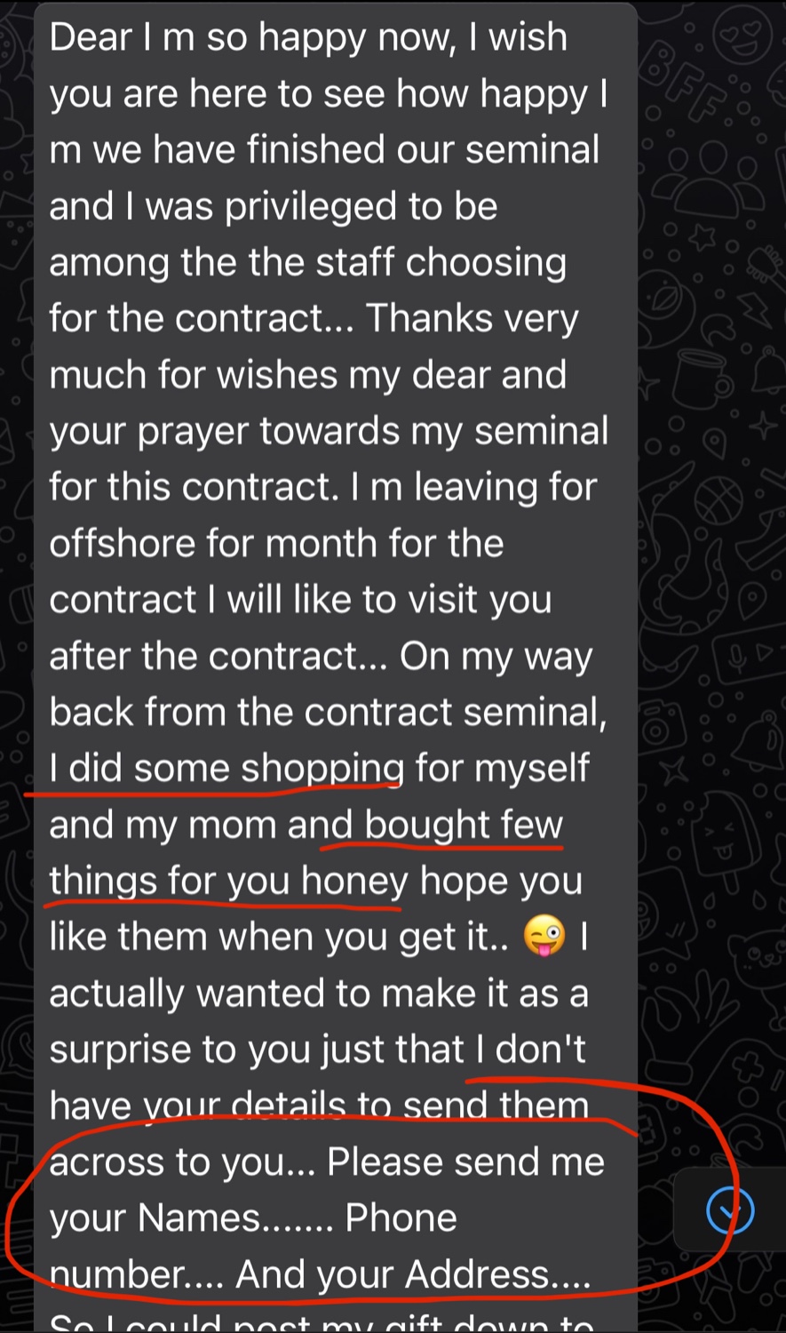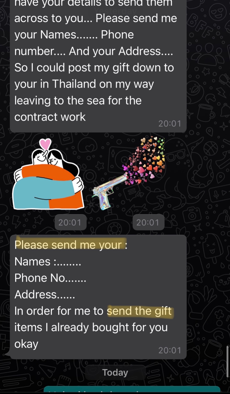 มีฝรั่งจะส่งของมาให้ ขอชื่อ ที่อยู่ เบอร์โทร