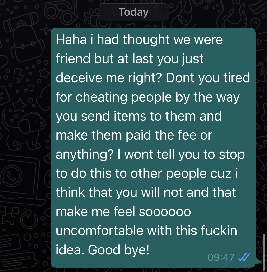 เราคิดว่าเค้าคงจะหลอกให้เราจ่ายค่าส่งหรือจ่ายอะไรรึเปล่า