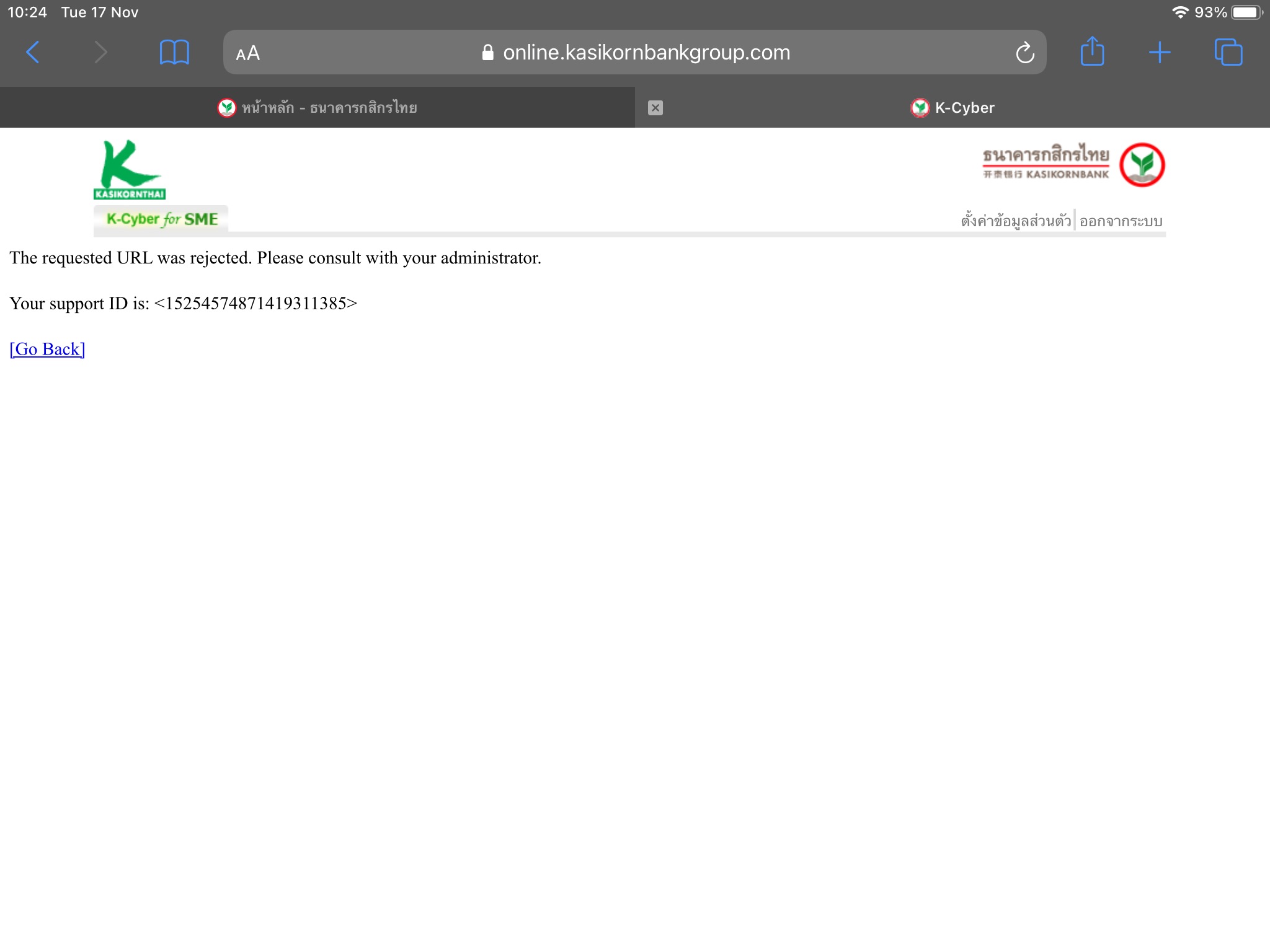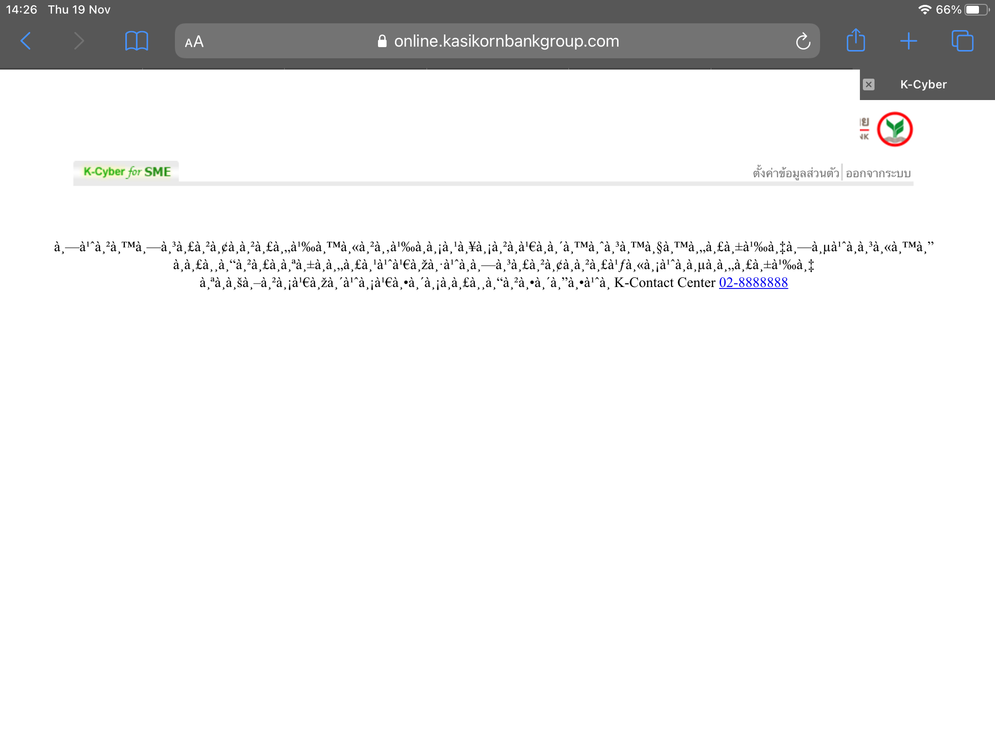 เรียนถาม K cyber (for SME) เรื่องปัญหาการเข้าเว็บจาก Ipad ค่ะ