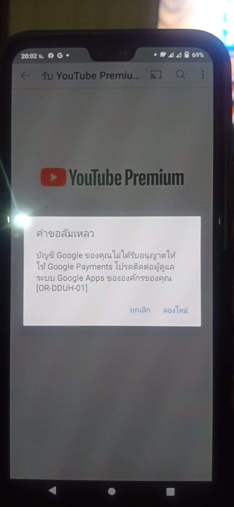 บัญชี Google ของคุณไม่ได้รับอนุญาตให้ใช้ Google Payments โปรดติดต่อผู้ดูแลระบบ