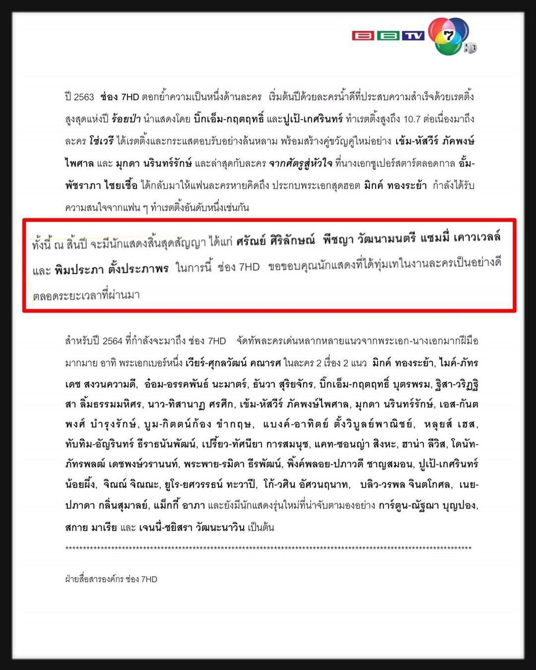 นักแสดงที่หมดสัญญาช่อง7 แล้วโดนร่อนหนังสือ คือนักแสดงฉีกสัญญาใช่ไม