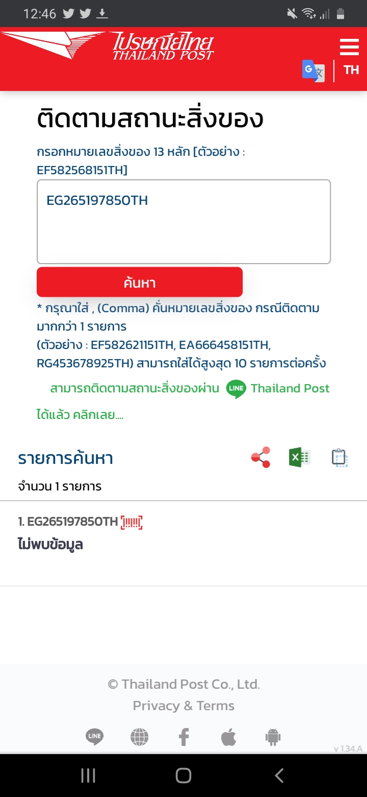 เช็คพัสดุขึ้นว่าไม่มีในระบบ
