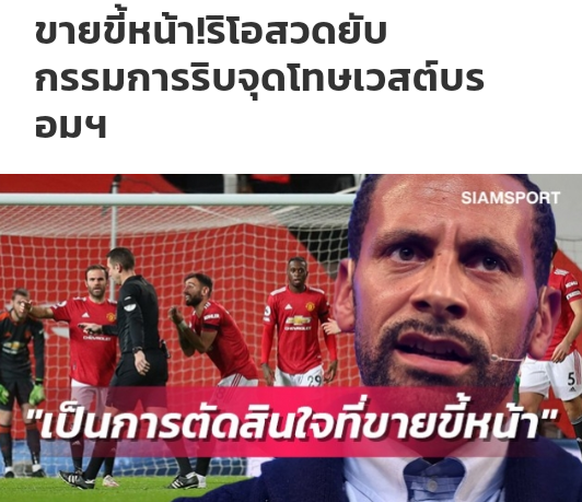ริโอ เฟอร์ดินานด์ ตำนานกองหลังทีมชาติอังกฤษ และสโมสรแมนเชสเตอร์ ยูไนเต็ด ที่ปัจจุบันรับหน้าที่เป็นกูรูฟุตบอล แสดงความเห็นว่าไม่เห็นด้วยกับการตัดสินของ เดวิด คูต ผู้ตัดสินในเกมระหว่าง "ปีศาจแดง" พบกับ เวสต์บรอมวิช อัลเบี้ยน หลังเปลี่ยนใจริบจุดโทษคืน ทั้งที่ตอนแรกตัวเองชี้เป็นลูกฟาวล์ในเขตโทษแล้ว