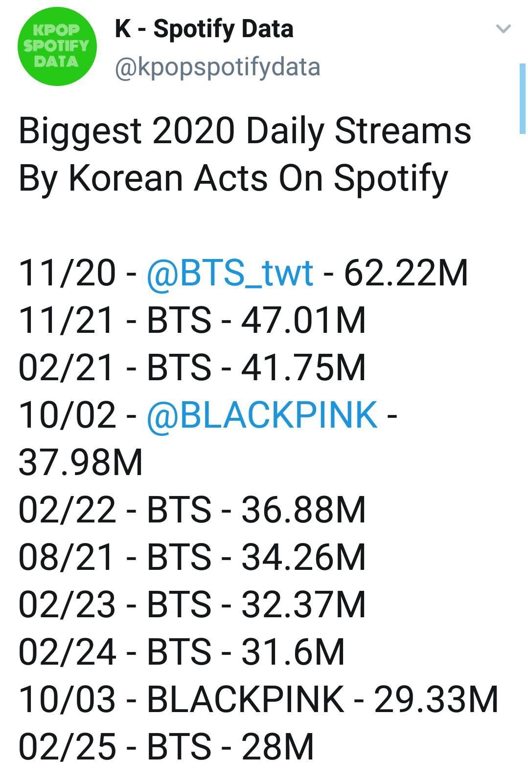 [K-pop] Most Stream 2020 Songs on Spotify