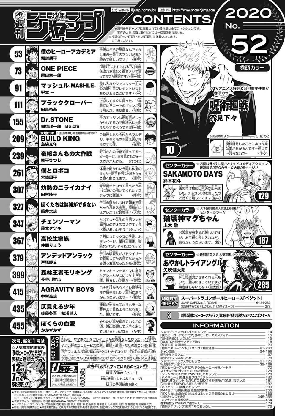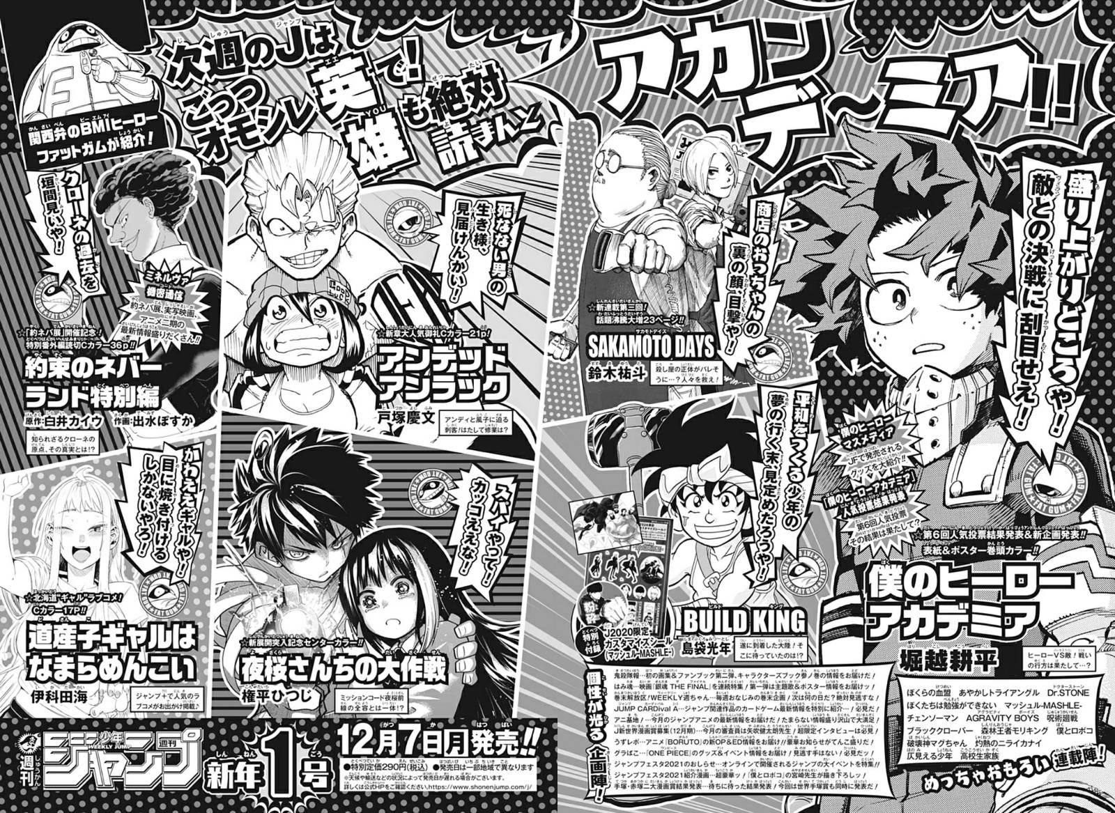- จัมป์ฉบับนี้จะอัพลงM+ในวันที่ 29 พฤศจิกายน เวลา 23.00 น. https://mangaplus.shueisha.co.jp/updates