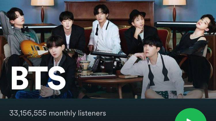 [BTS] BTSกลายเป็นศิลปินเกาหลีที่มีผู้ฟังรายเดือนมากที่สุดบนSpotify ด้วยยอดผู้ฟัง33,156,555 คน และเป็นรายแรกที่ทำได้💅