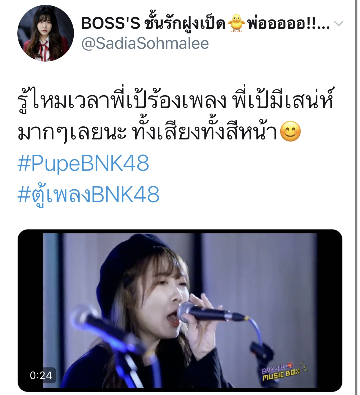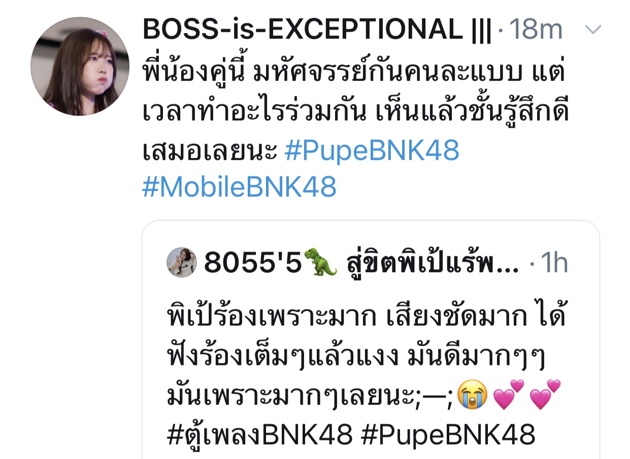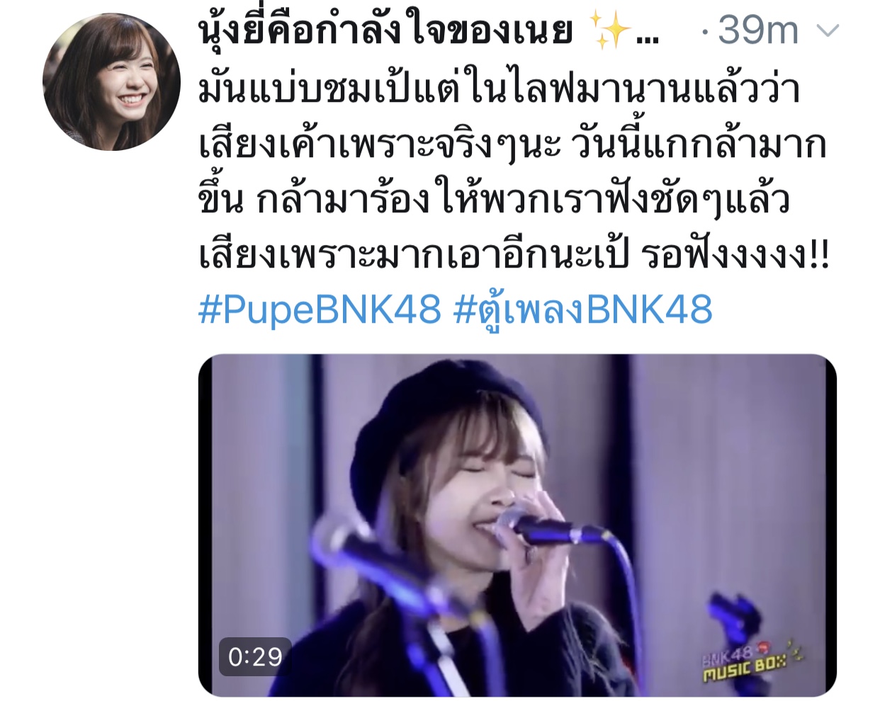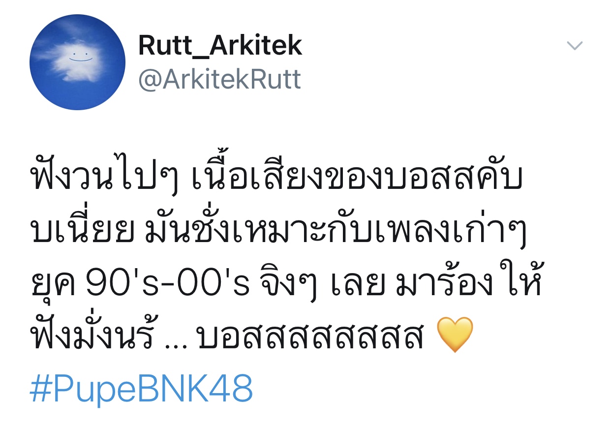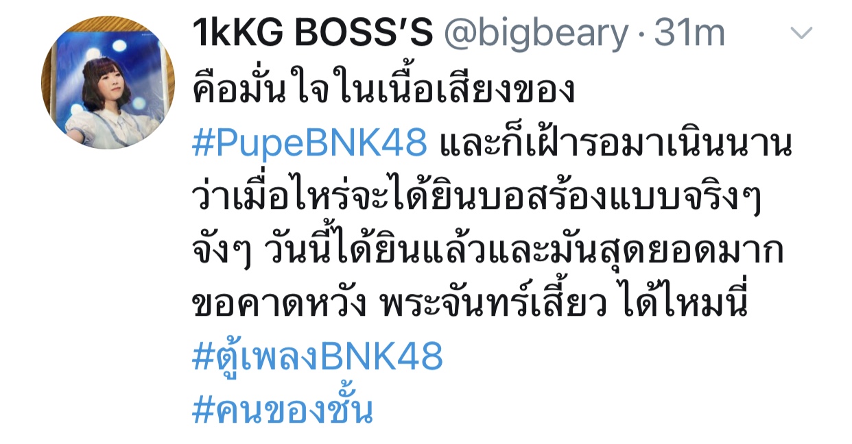 ปลื้มปริ่มมากตั้งแต่เมื่อวาน ฟังซ้ำวนไปวนใา เอ๊ย น้องเรามันร้องดีอะ เพราะอะ เหมาะสมอะ ร้องเพลงเก่งขึ้นเยอะเลย ภูมิใจ วันไหน vocal ไม่ว่าง ติดต่อมาได้นะจ๊ะ https://app.bnk48.com/timeline/conten
