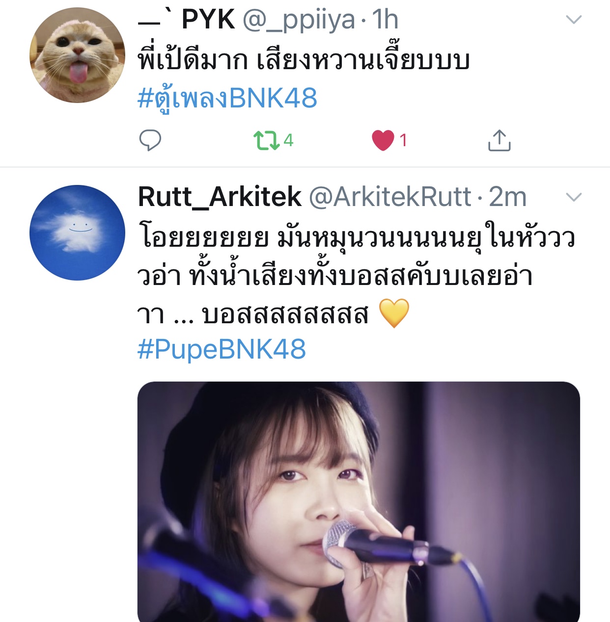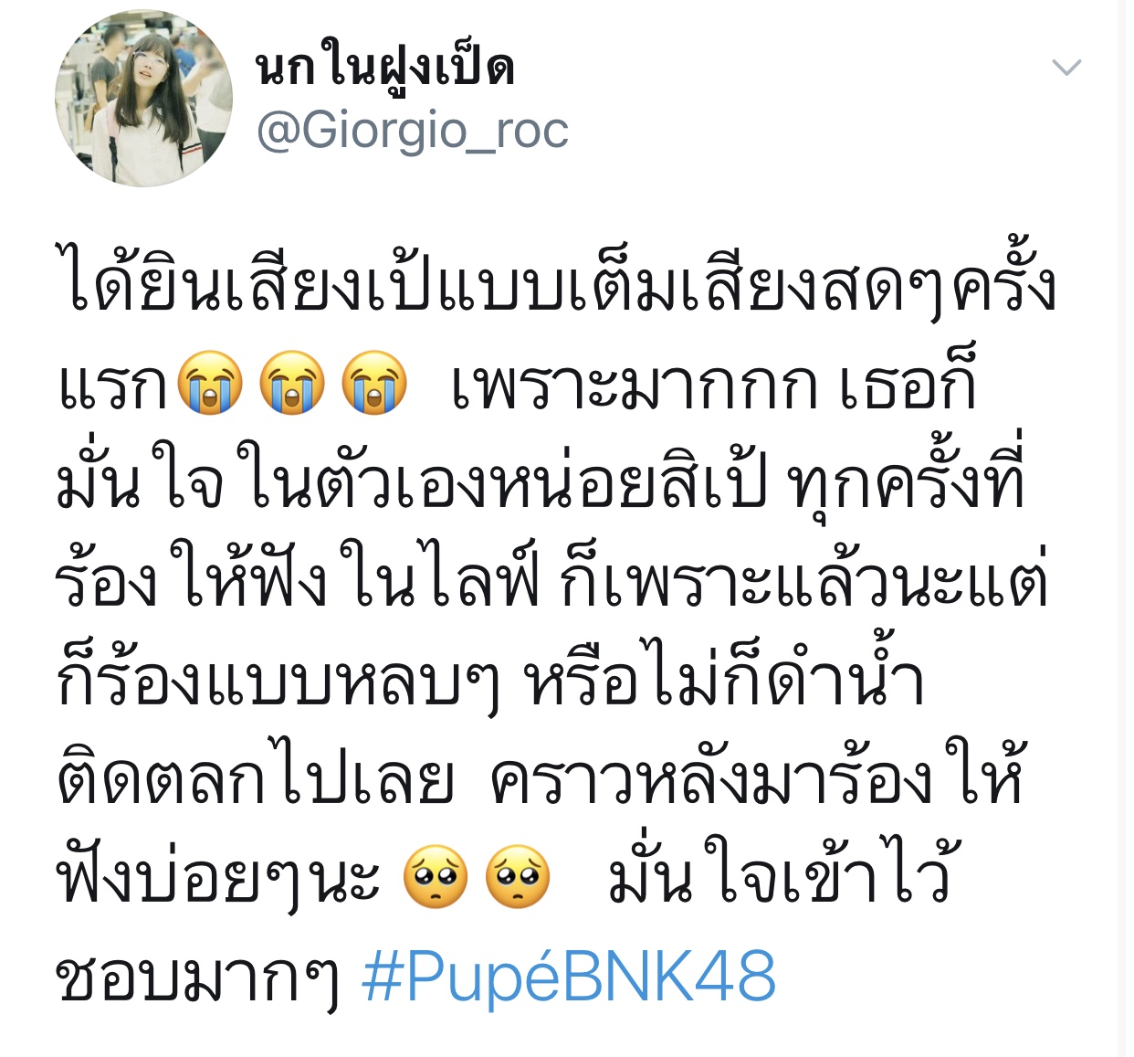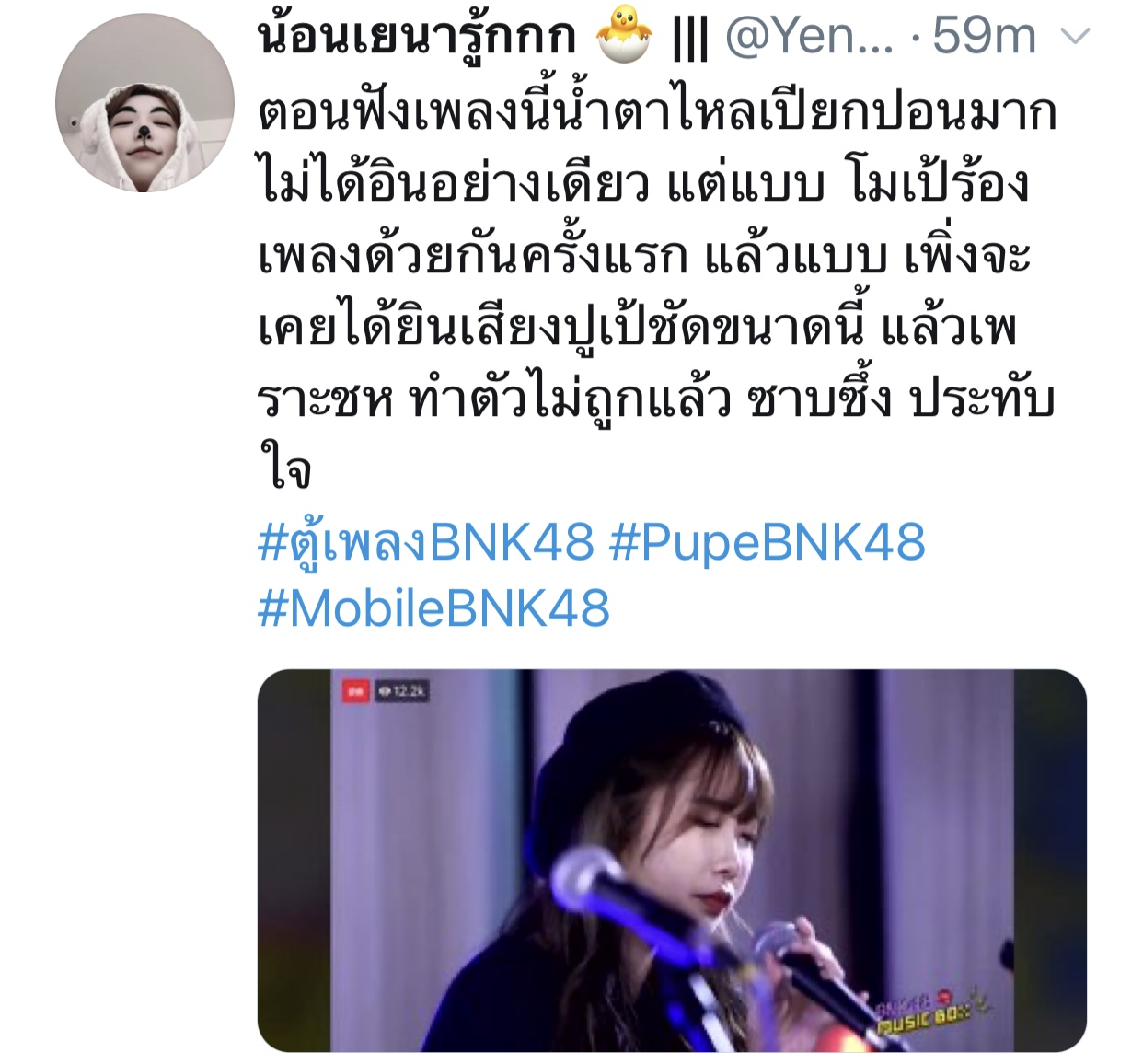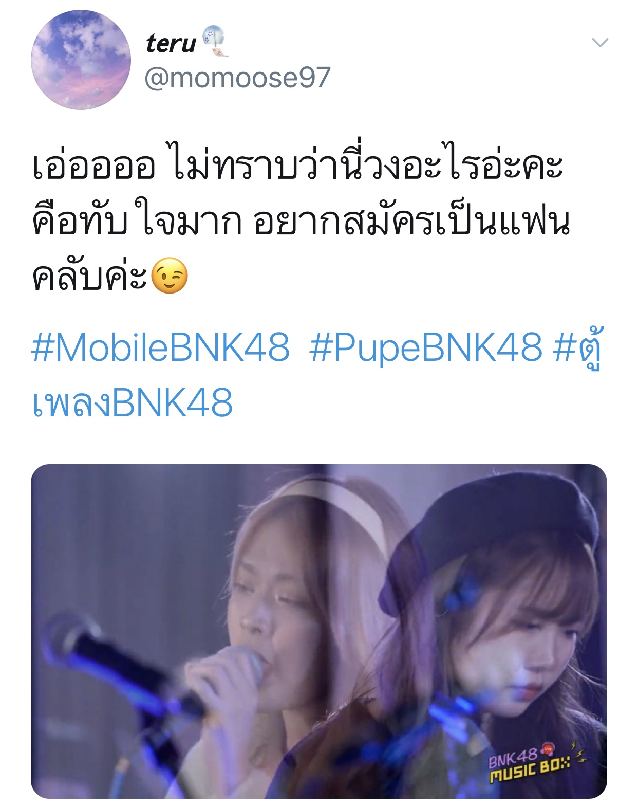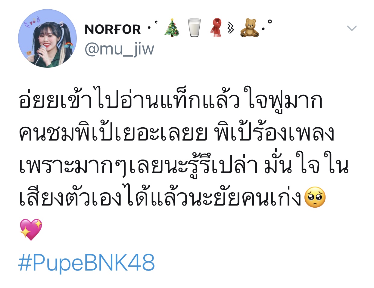 ปลื้มปริ่มมากตั้งแต่เมื่อวาน ฟังซ้ำวนไปวนใา เอ๊ย น้องเรามันร้องดีอะ เพราะอะ เหมาะสมอะ ร้องเพลงเก่งขึ้นเยอะเลย ภูมิใจ วันไหน vocal ไม่ว่าง ติดต่อมาได้นะจ๊ะ https://app.bnk48.com/timeline/conten