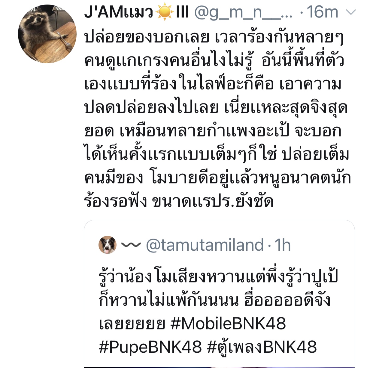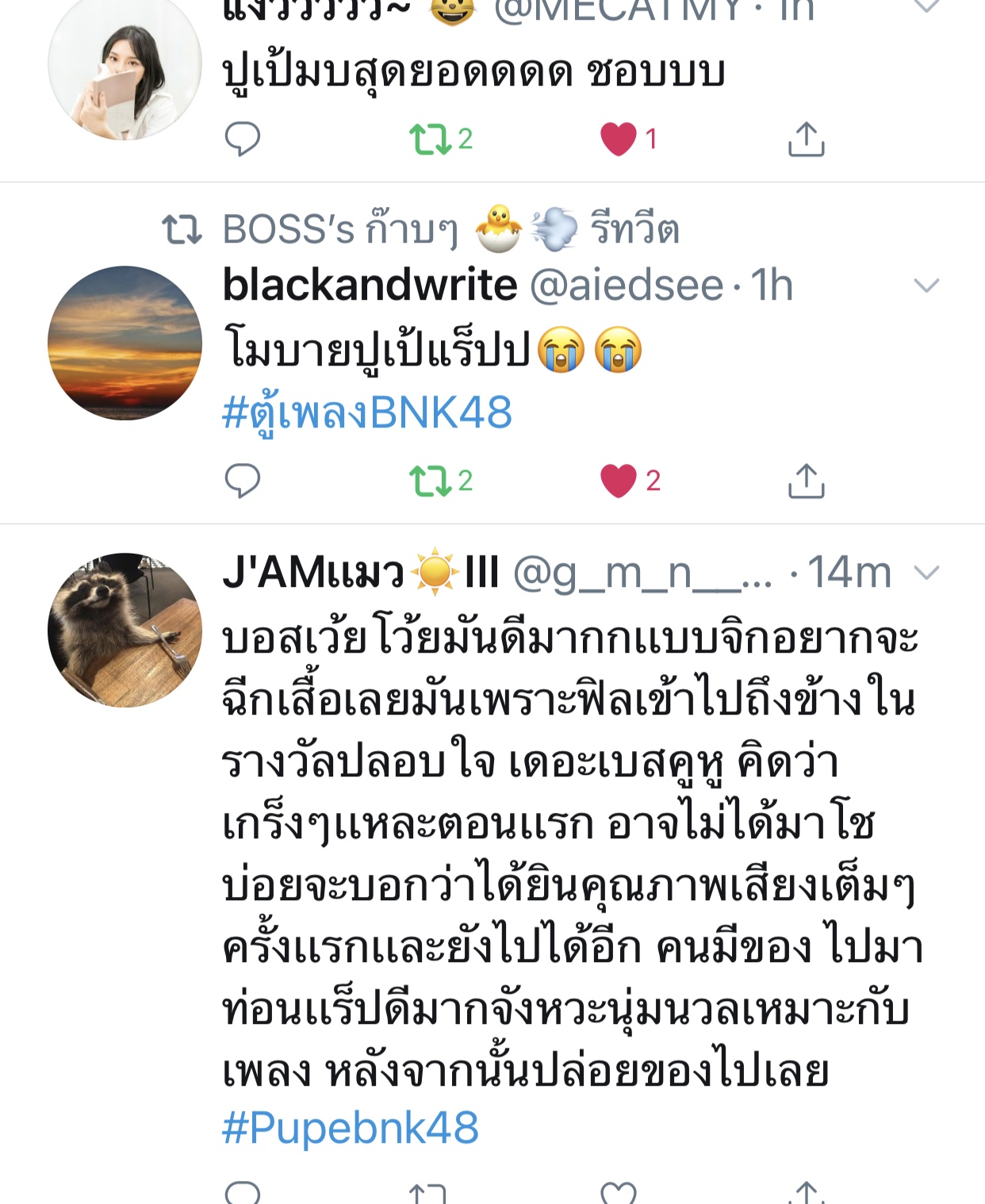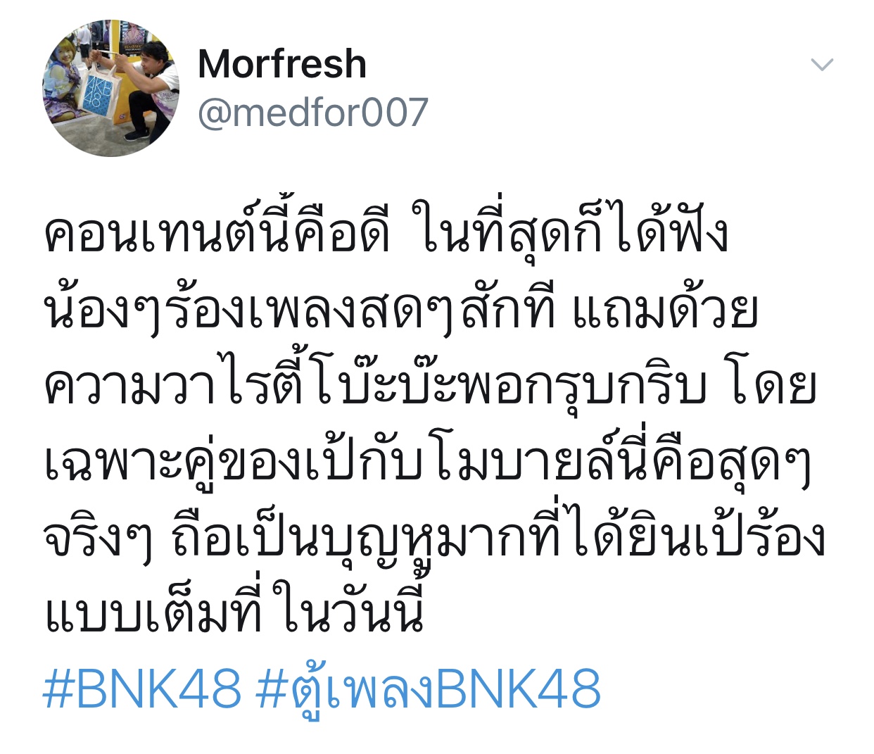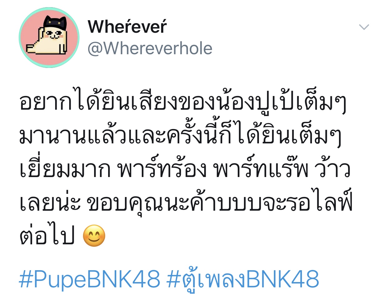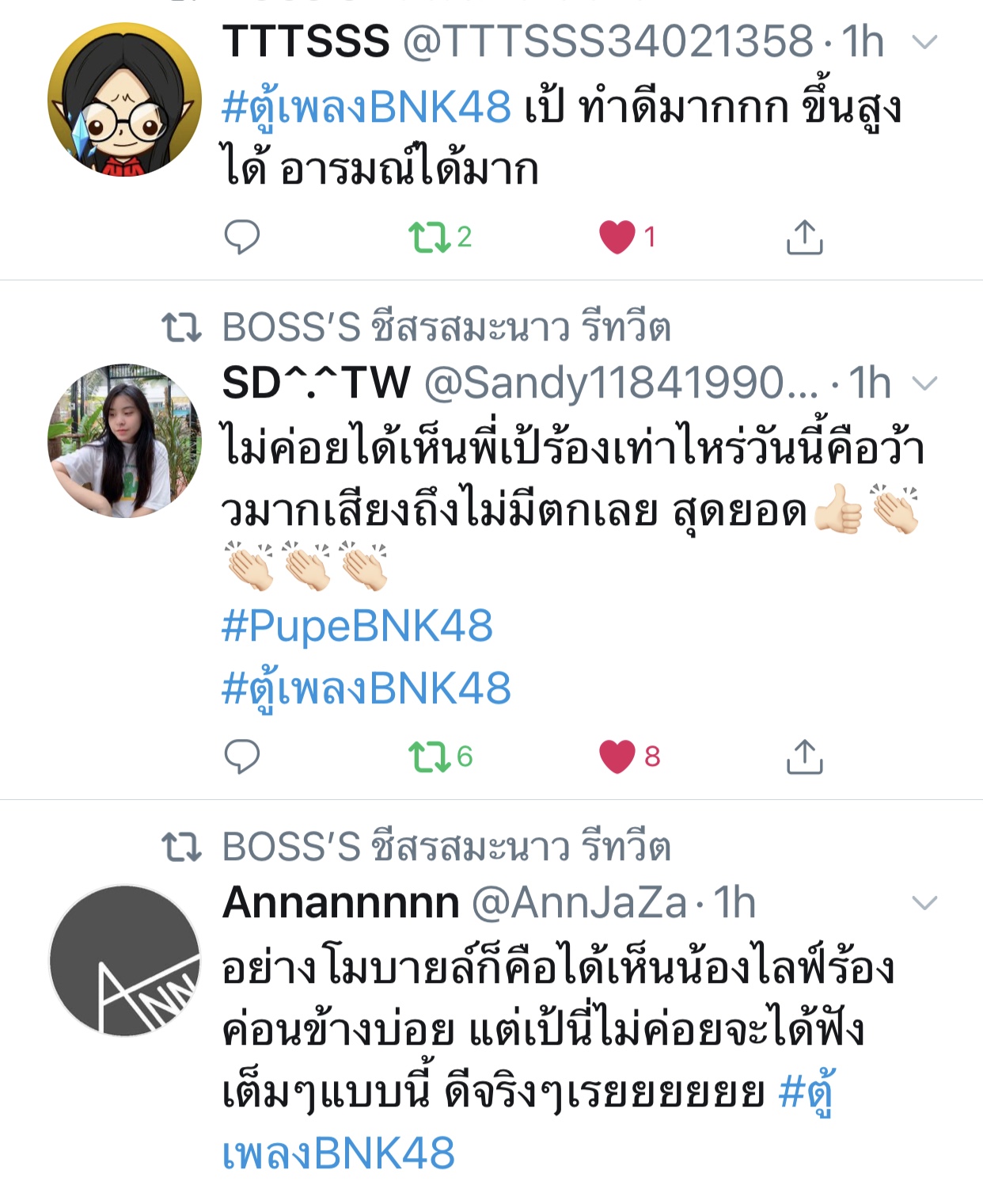 ปลื้มปริ่มมากตั้งแต่เมื่อวาน ฟังซ้ำวนไปวนใา เอ๊ย น้องเรามันร้องดีอะ เพราะอะ เหมาะสมอะ ร้องเพลงเก่งขึ้นเยอะเลย ภูมิใจ วันไหน vocal ไม่ว่าง ติดต่อมาได้นะจ๊ะ https://app.bnk48.com/timeline/conten