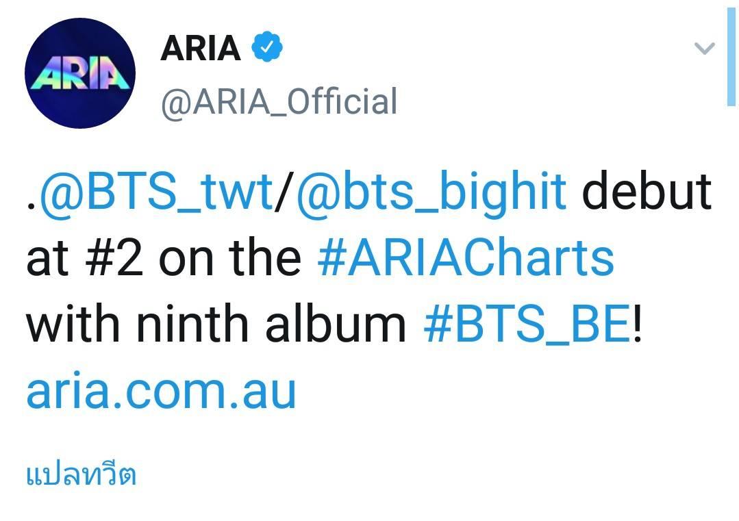 [BTS] 👑 'อัลบั้ม BE' เปิดตัวอันดับ #2 บน ARIA Chart ประเทศออสเตรเลีย 🇦🇺