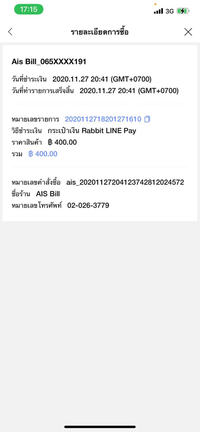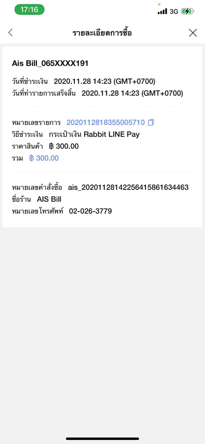 รบกวน ais ชำระค่าบริการ ทาง line pay ยอดยังไม่ปรัปให้เลย ผมจะได้ ชำระยอดที่เหลือ เพื่อได้เปลี่ยนเติมเงินเป็นรายเดือน