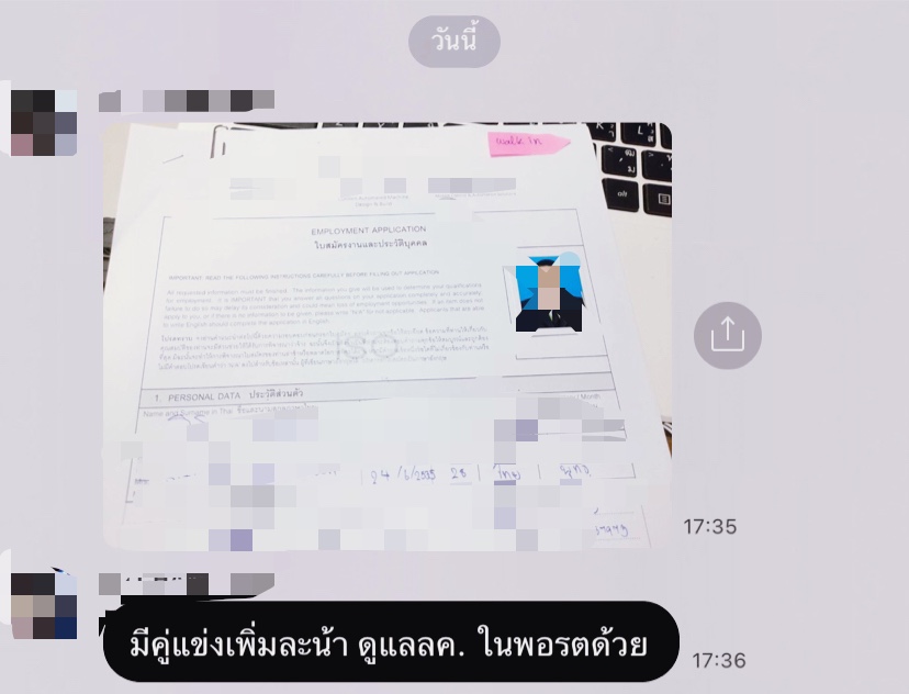 วันนี้มีเพื่อนร่วมงานคนหนึ่งแคปแล้วส่งมาให้ผมดูว่า " เห้ย บริษัท B ที่แกไปสมัครงานไว้ส่งมาให้ผู้จัดการฝั่งนี้ด้วยหว่ะ "