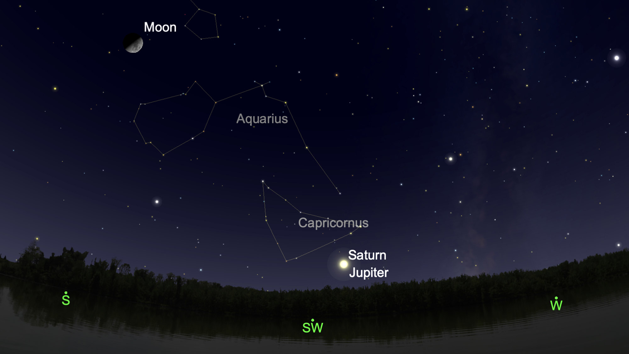 ดาวพฤหัสบดีและดาวเสาร์จะอยู่ห่างกันประมาณหนึ่งในสิบขององศาซึ่งใกล้เคียงที่สุดนับตั้งแต่ปี 1623