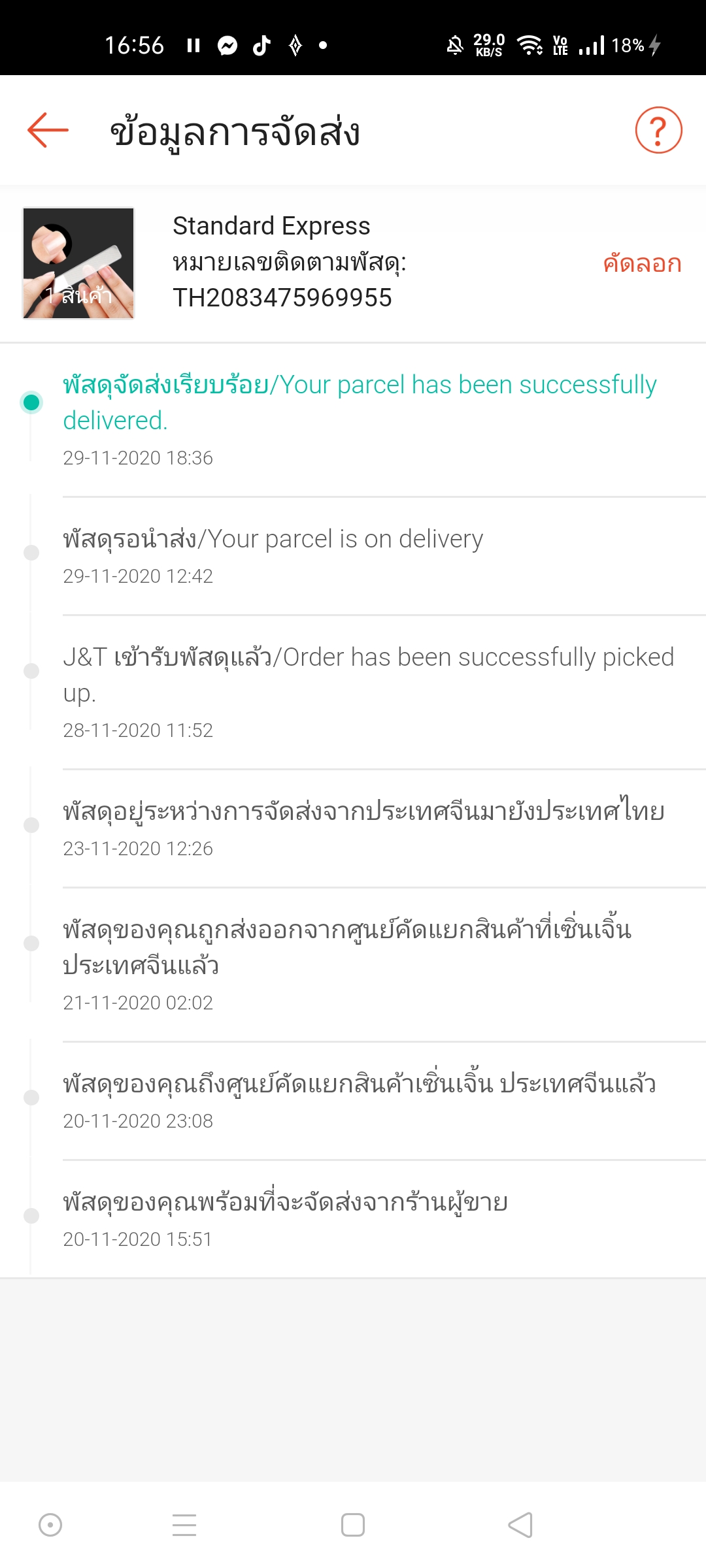J&T ขึ้นส่งของสำเร็จแล้วแต่ยังไม่ได้ของ