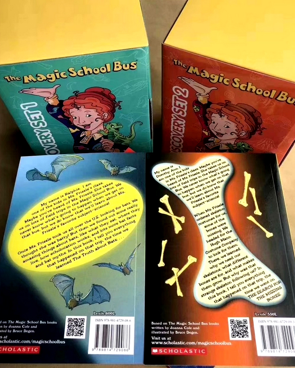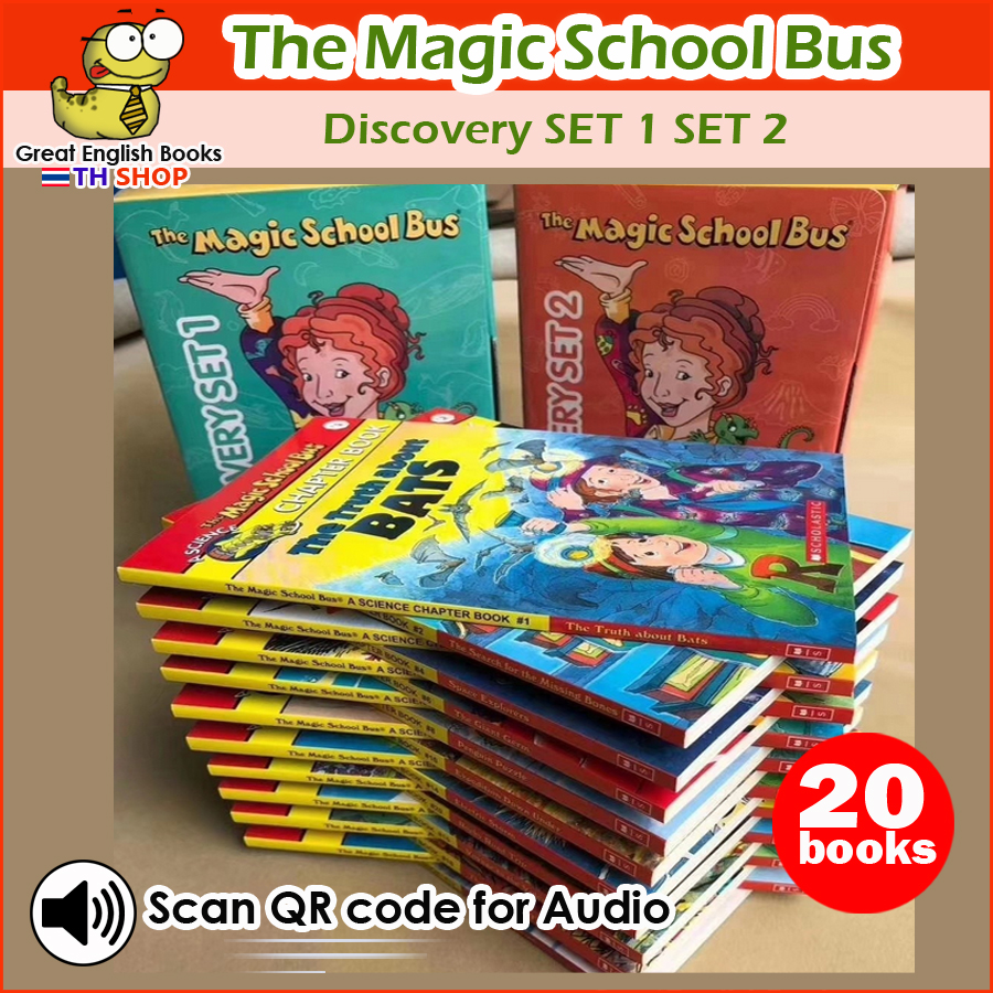 มาร่วมผจญภัยไปกับ The Magic School Bus Discovery Set ~ 20 books ชุดนี้เป็นชุดรวม Box 1+ Box 2 จำนวน 20 เล่ม ไม่มี CD ให้นะคะ แต่สามารถ Scan QR Code ด้านหลังหนังสือเพื่อฟังเสียงบรรยายได้ค่ะ