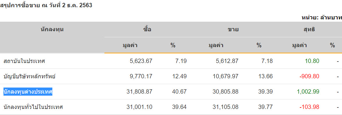 Sinthorn Summary 2/12/2563 : ต่างชาติซื้อสุทธิ 1,002.99 ลบ.