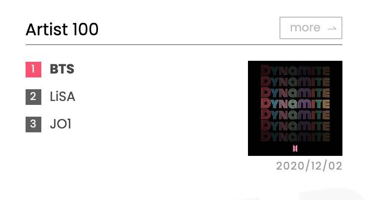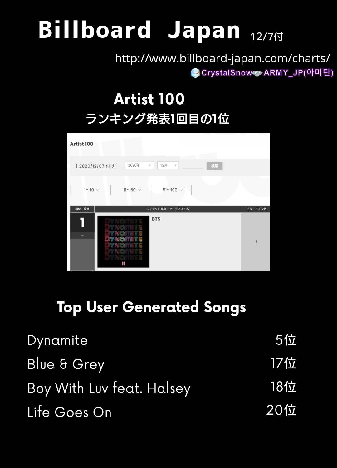 ▶ BTS ขึ้นอันดับ 1 บนชาร์ตเปิดตัวใหม่ > Billboard Japan Artist 100