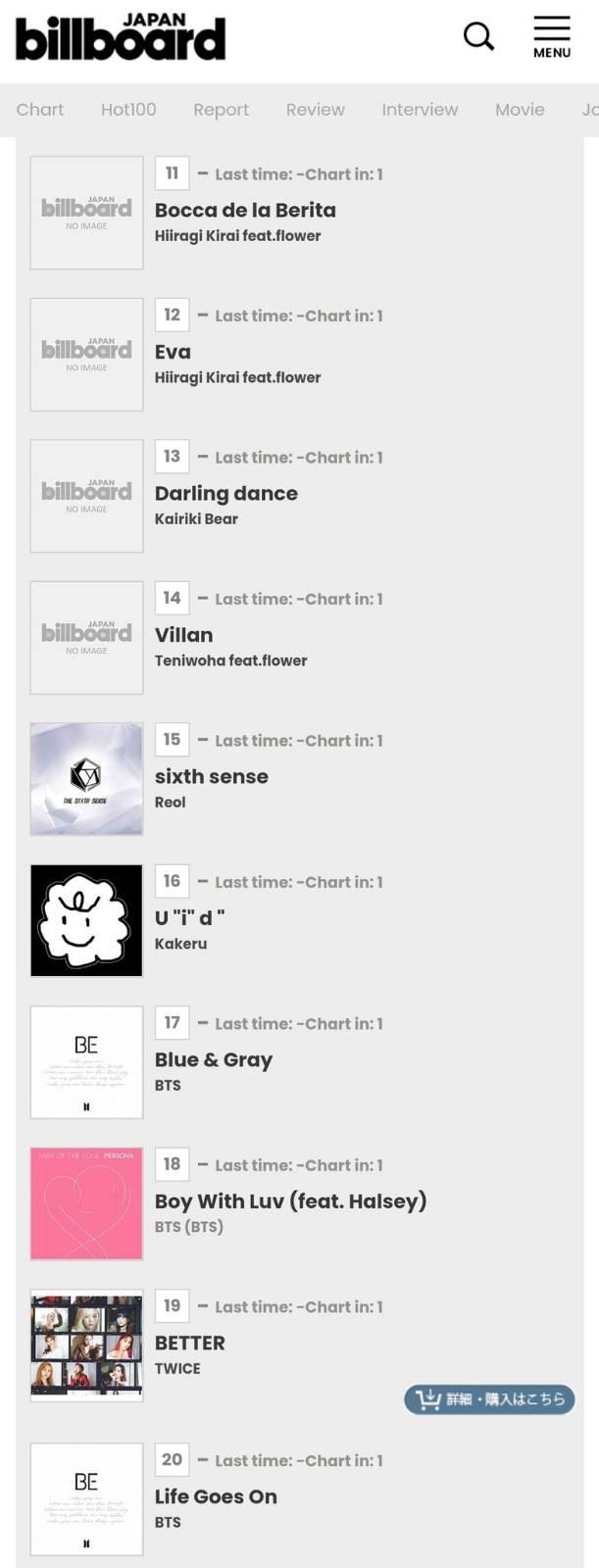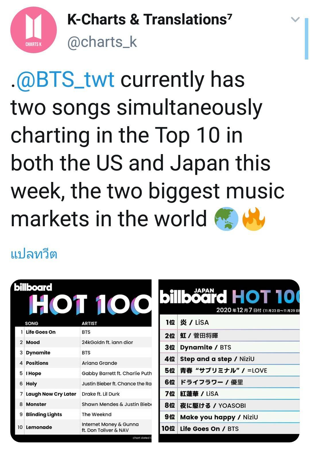 ▶ BTS มี 4 เพลงติดอันดับบน Billboard Japan Top User Generated Songs (ชาร์ตเปิดตัวใหม่)