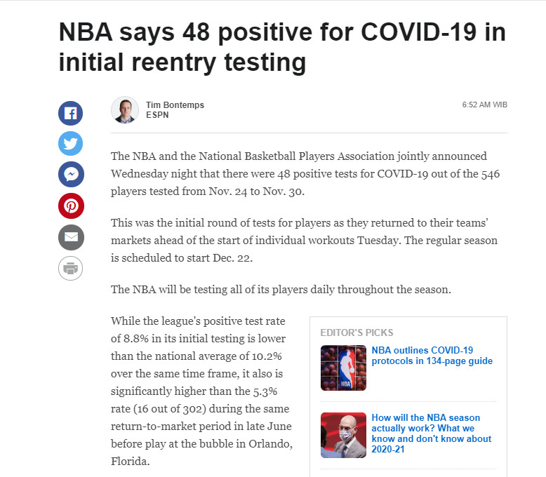 🏀 การตรวจ COVID รอบแรก นักบาส 48 คน มีผลเป็นบวก