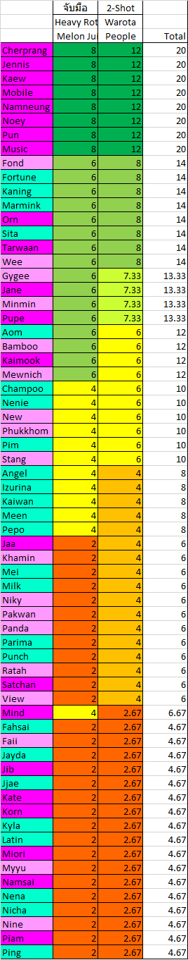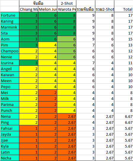 สรุป จำนวนรอบ 2SHOT BNK48 CGM48