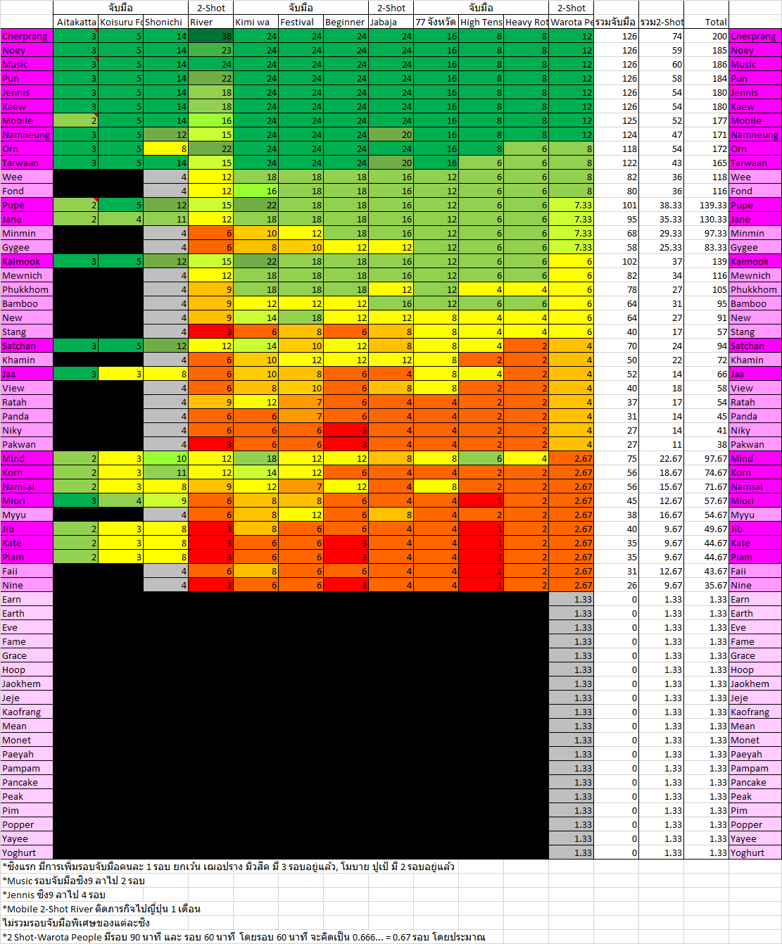 2 Shot-Warota People มีรอบ 90 นาที และ รอบ 60 นาที โดยรอบ 60 นาที จะคิดเป็น 0.666... = 0.67 รอบ โดยประมาณ